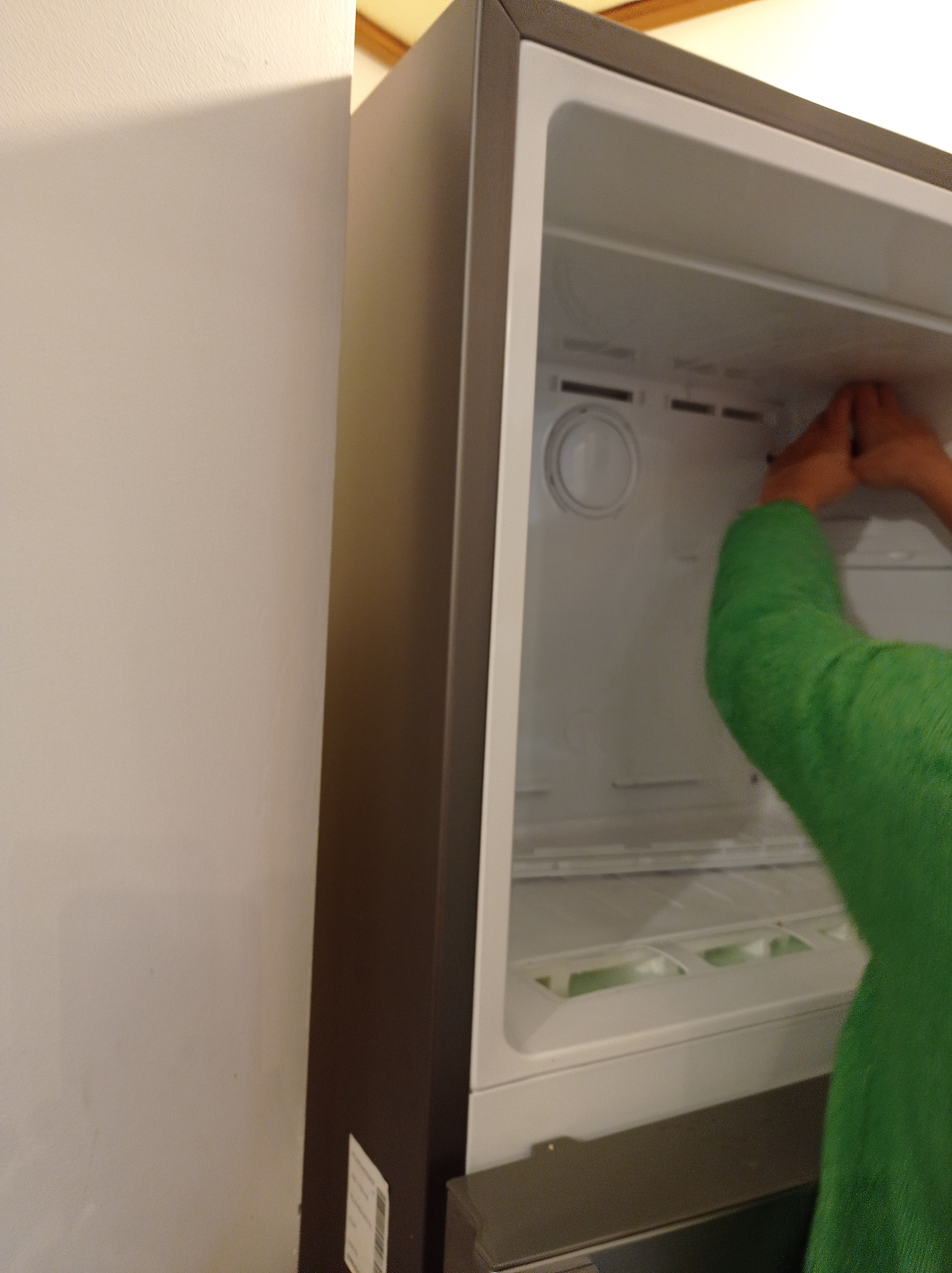 Après son départ, j'ai encore enlevé une pastille dans le compartiment frigo, la même que celle du freezer... avec de nouveau un trou caché derrière mais je n'ai pas testé : à quoi bon !