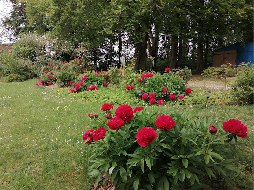 Au pied des pivoines en motte dans le parterre des rosiers (à fleurir) le couvre sol,qui s'agrandit d'année en année, est constitué par des fraisiers des bois. Cordialement