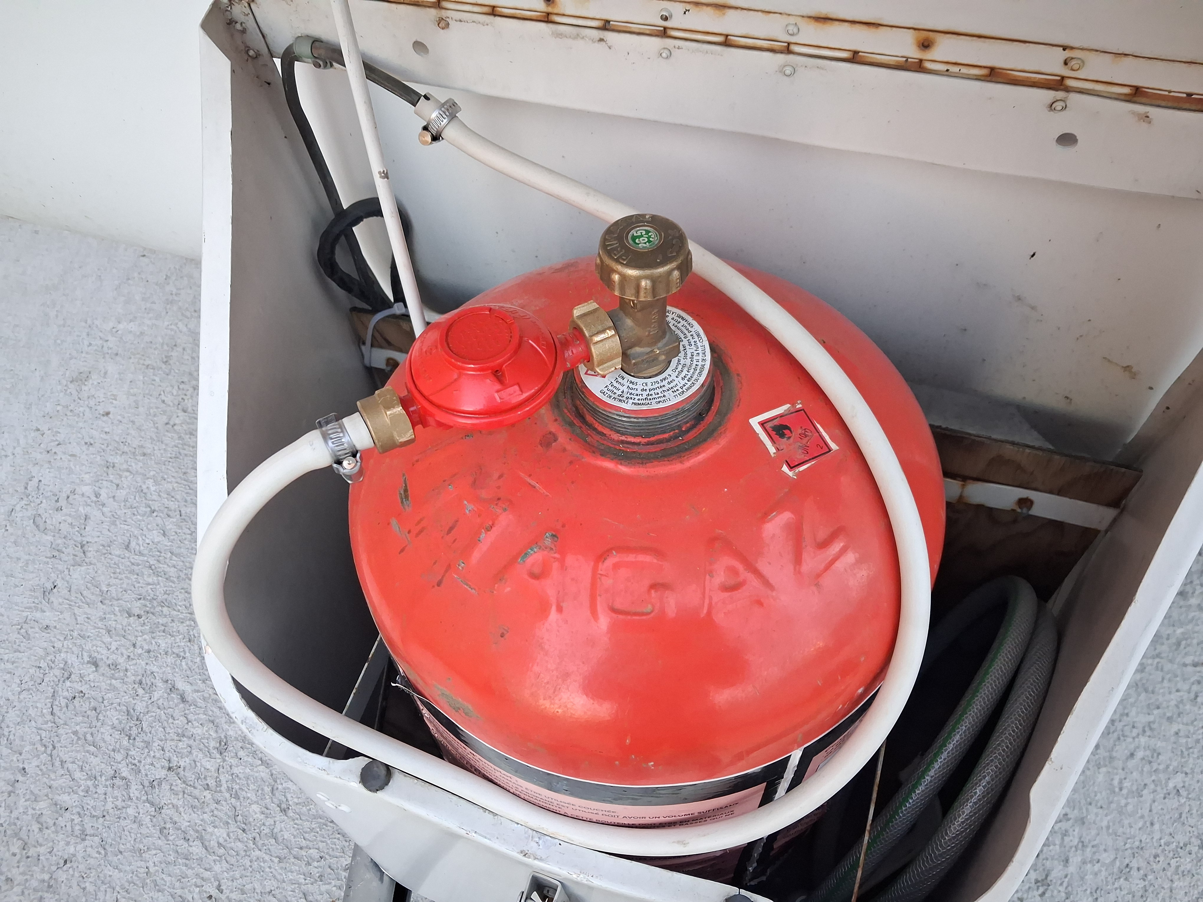 Je me doute bien que mon installation n'est pas conforme aux normes d'aujourd'hui mais c'était comme ça quand je l'ai achetée et ça a très bien fonctionné pendant 2 ans. Et également pendant les 50 ans du premier propriétaire, qui a fabriqué lui-même la caravane.