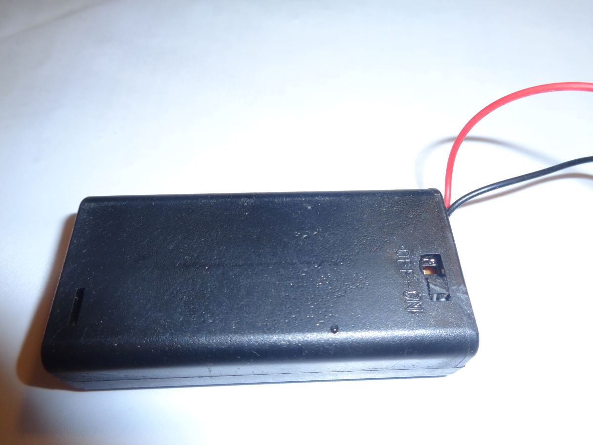 -D'abord, acheter sur internet une boite de couplage pour 2 batteries AA, fermée, couvercle à vis, interrupteur M/A, avec fils de sortie, noire . Facile à trouver. Elle fait exactement la taille qu'il faut, pour moins de 3 euros....port compris...