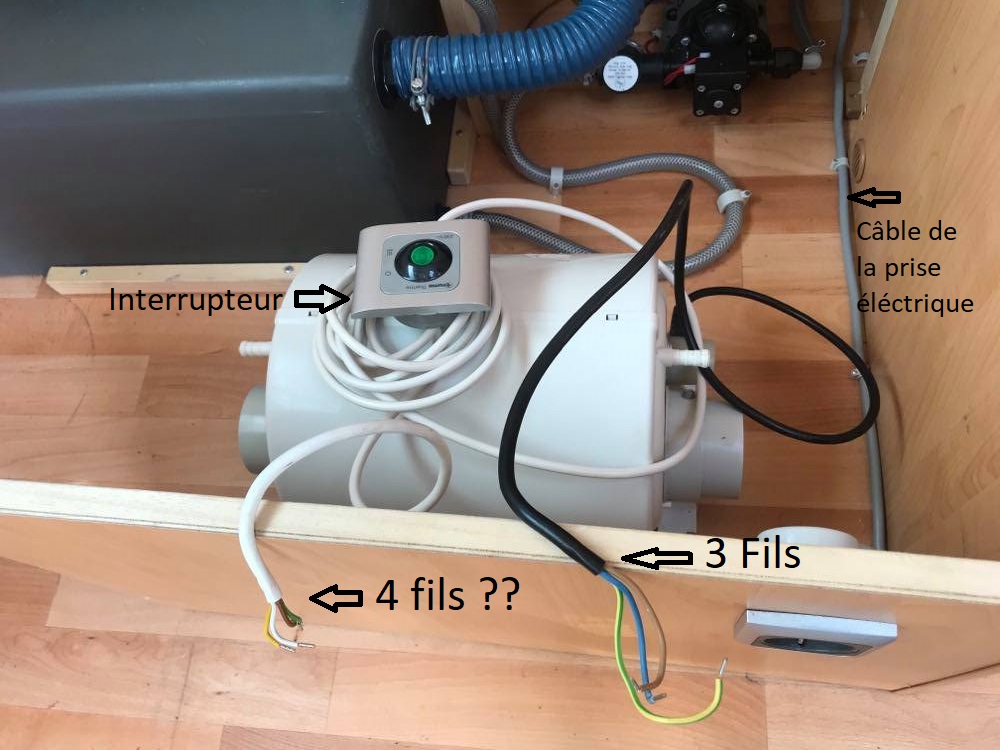 Le câble noir de l'alimentation comporte 3 fils par contre celui de l'interrupteur, le câble blanc comporte lui 4 fils et me voilà déjà perdu !!