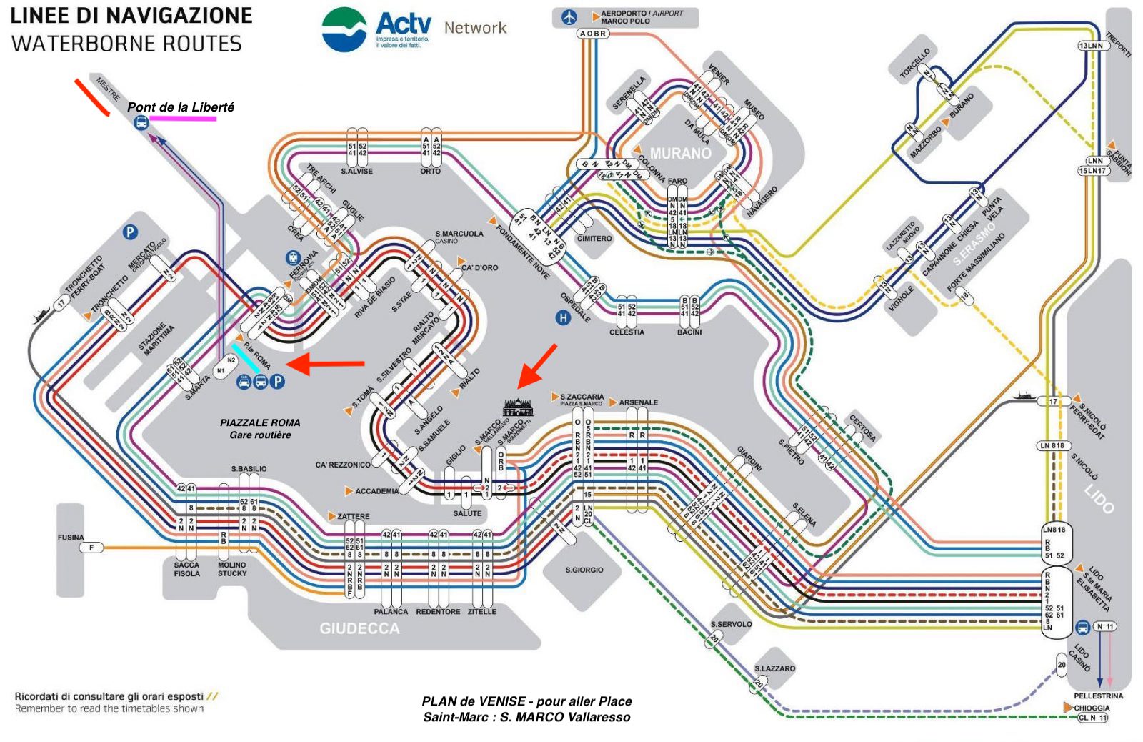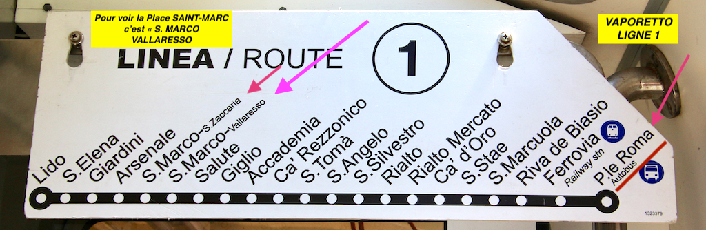 Pour les embarcadères et les lignes à prendre à Venise voir ce site : «