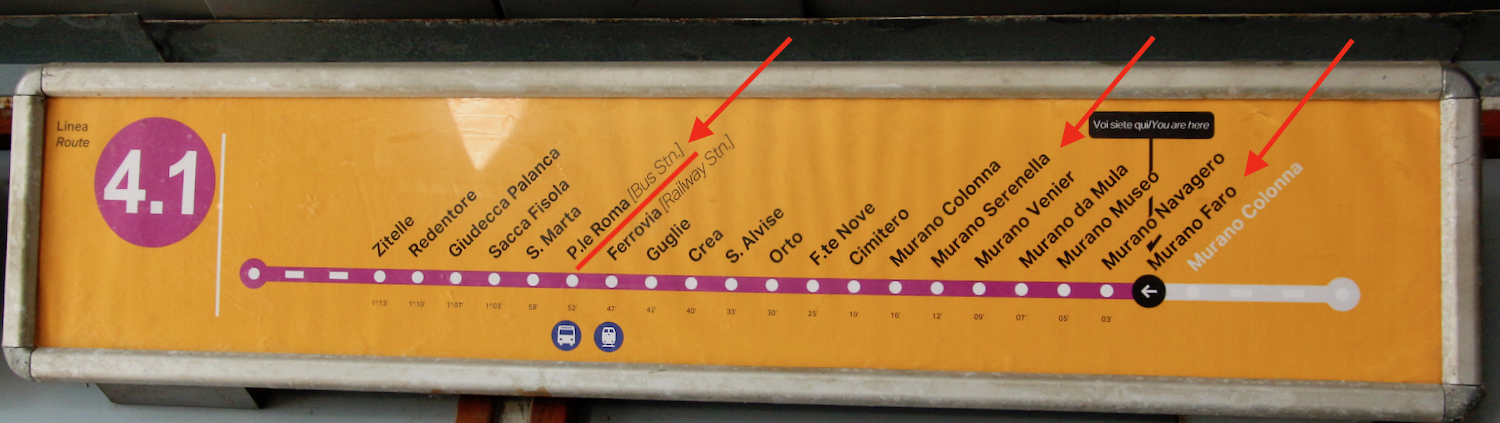 Lignes de vaporetto à Venise, les parcours, les arrêts »