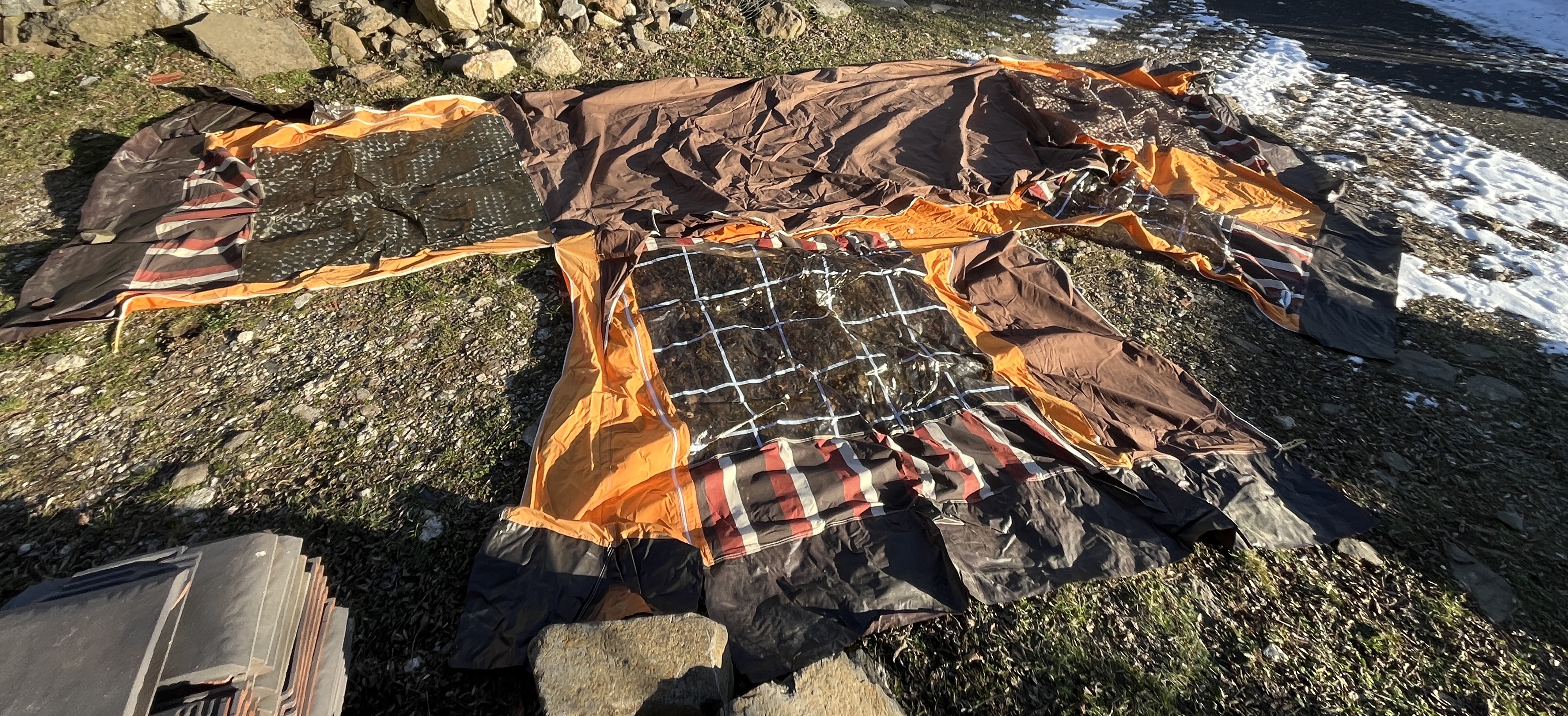 La grande toile marron qui est sur la 3ème photo semble être le toit d'une solette qui se met dans le rail d'auvent de votre caravane (à la place de l'auvent).