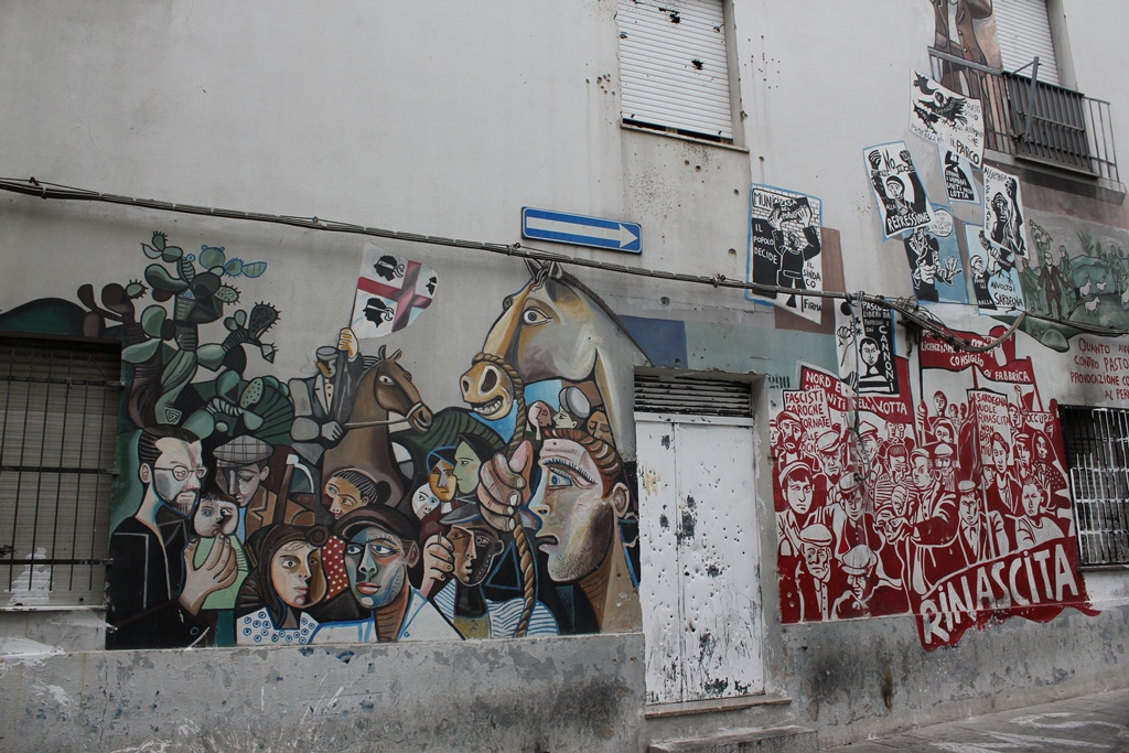 Pour Orgosolo, le village est entièrement couvert de fresques et de grafitis. Méthode contestataire utilisée par les habitants du village.