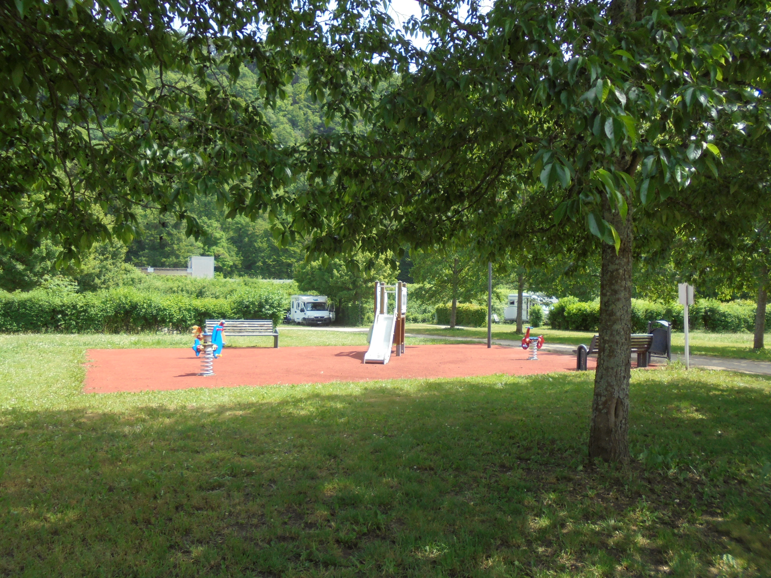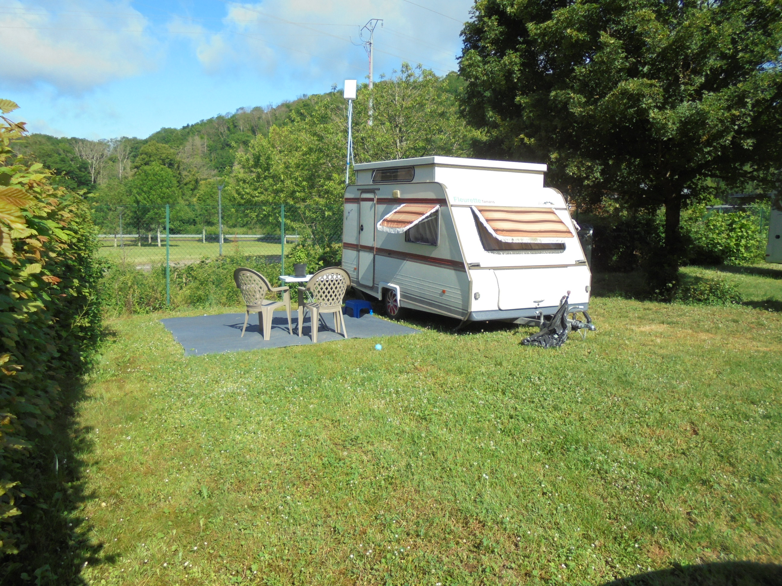 Un peu de jeux pour enfants, mais pas de piscine, donc un camping plutôt pour des personnes d’un certain âge. Pour le wifi, c’est à l’accueil ou la salle commune, pour la TNT, très bonne réception avec mon antenne et aussi avec l’antenne de ma fabrication, mais avec ampli pour les deux, (je fais des tests pour voir l’efficacité de celle-ci).