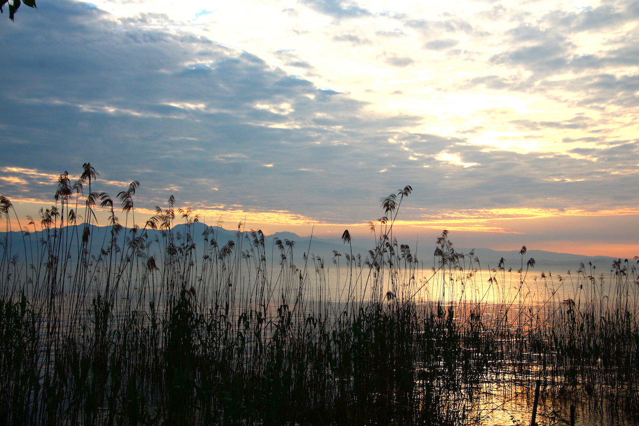 ITALIE - Lever du soleil sur le Lac majeur et bateaux sur le Lac de Garde, un très bon souvenir d'avoir campé en mai dernier au bord de ces lacs italiens
