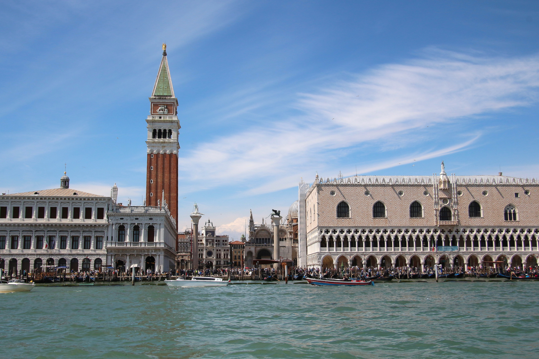 Depuis le vaporetto la place St Marc et le palais des Doges