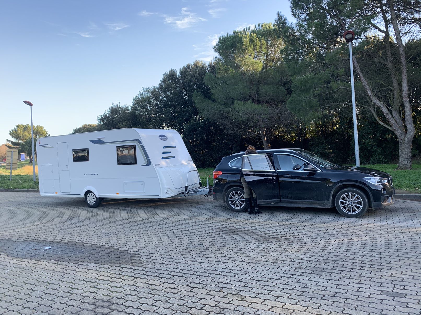 On est rentré avant la tempête qui s’annonce et notre premier trajet en caravane était costaud entre le traffic dense du jour, un peu de vent, de pluie et la nuit. Je n’avais jamais tracté une caravane, seulement une remorque avec un quad (ptac < 500kg).