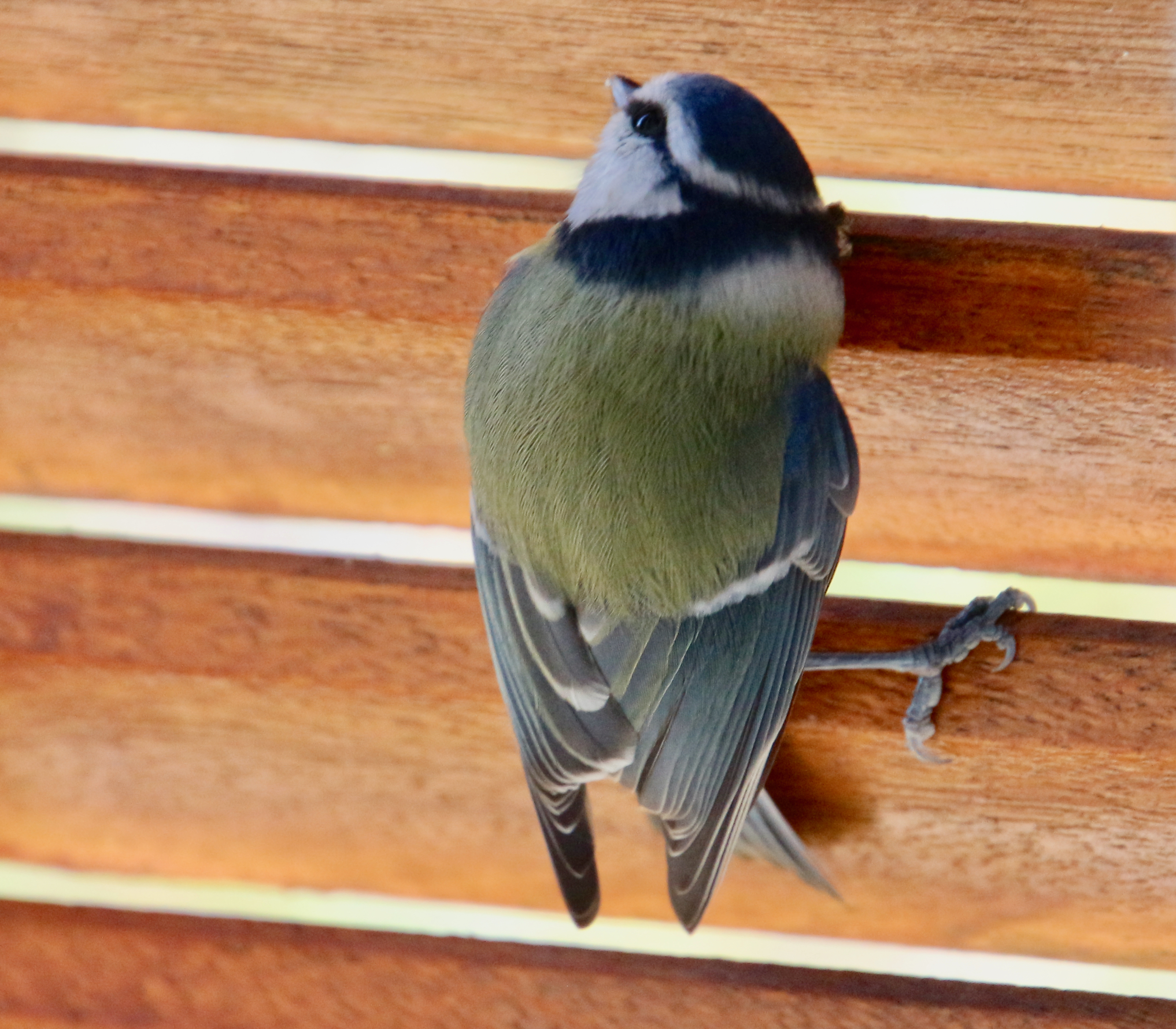 La mésange nonnette revient ! L'autre jour j'avais fermé un peu le volet parce qu'il y avait du vent ! ça fait rien les mésanges viennent quand même, je leur place en bas de la fenêtre du premier étage quelques graines de tournesol, ça les attirent ! là c'est une mésange bleue qui s'accroche au volet, entre volet et fenêtre, en attendant que l'autre parte.
