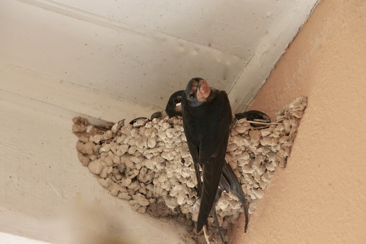 Les hirondeaux ont bien grandi, ils sont 4 ! c'est la deuxième couvée de l'hirondelle qui se trouve sous mon porche, là elle se retourne pendant que je la prend en photo. Je pense que ses "petits" vont pas tarder à s'envoler, surtout deux qui sont très gros, ça lui fera de la place, car le soir elle n'a plus que le bord du nid pour s'installer.