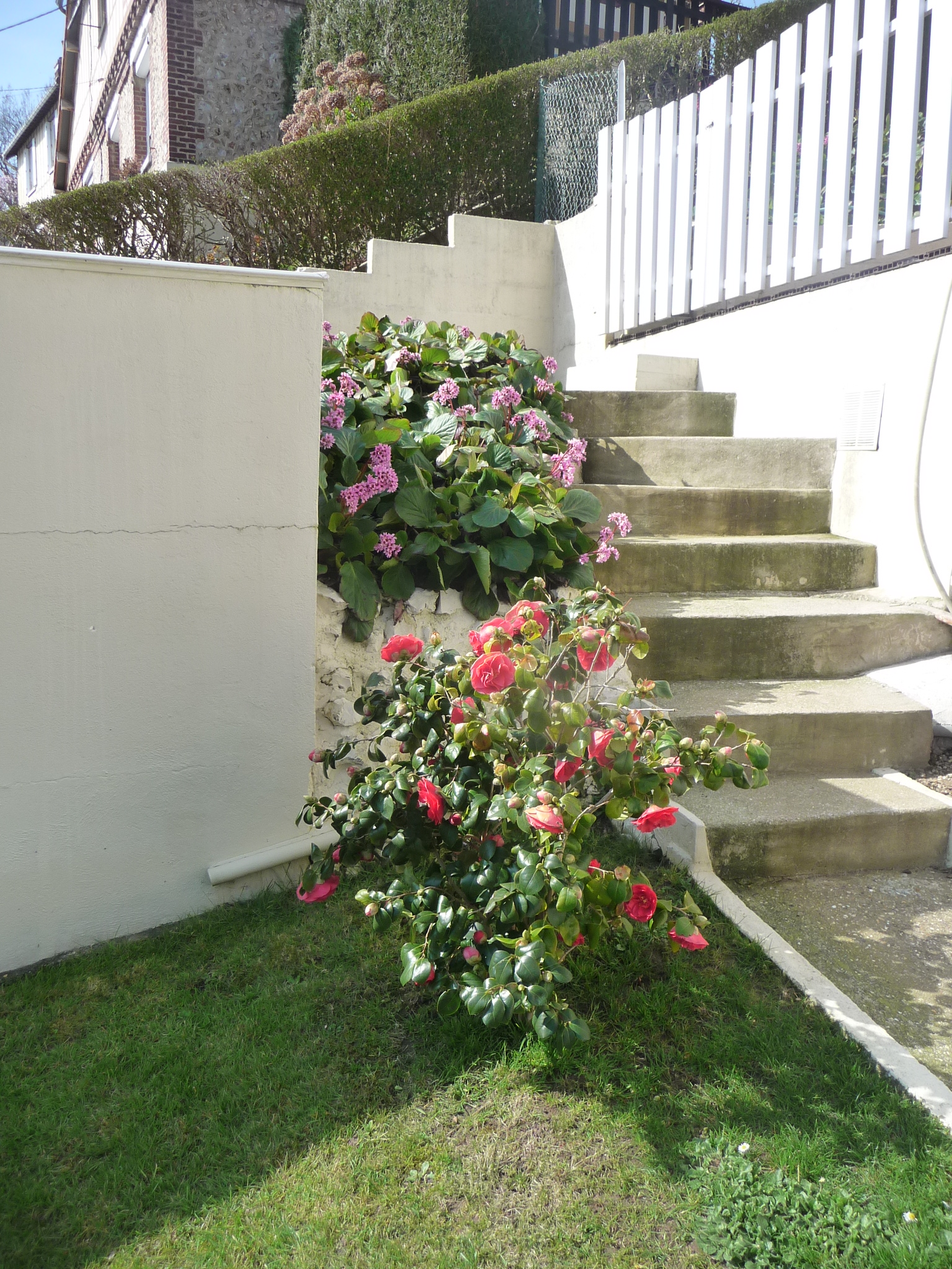 le camélias a fini de fleurir et se repose ,pour les lys ça pousse doucement ,le rosier grimpant a aussi de petites feuilles