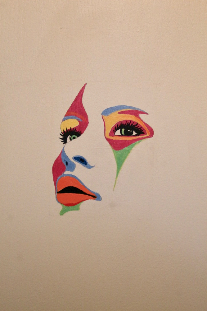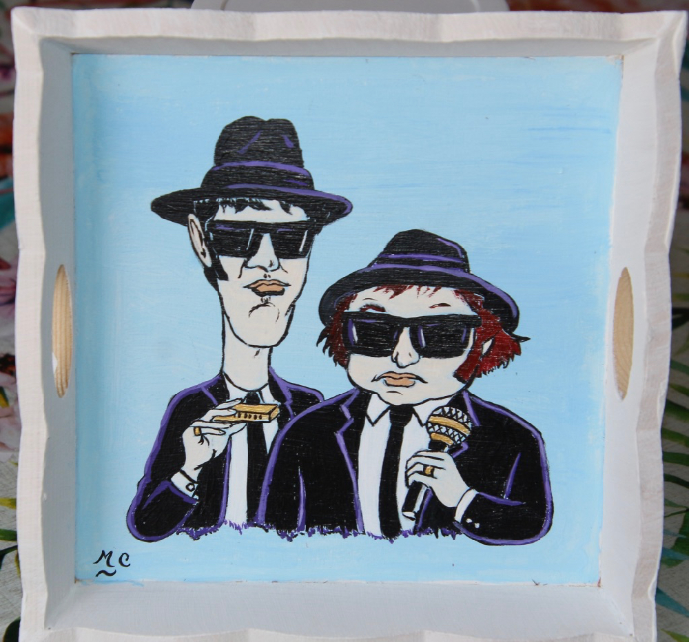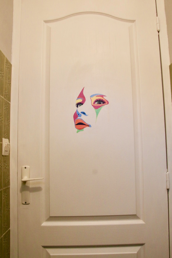 Peinture à l'acrylique, sur une porte ! Michel a choisi ce modèle. Commencée hier, terminé cet après-midi.