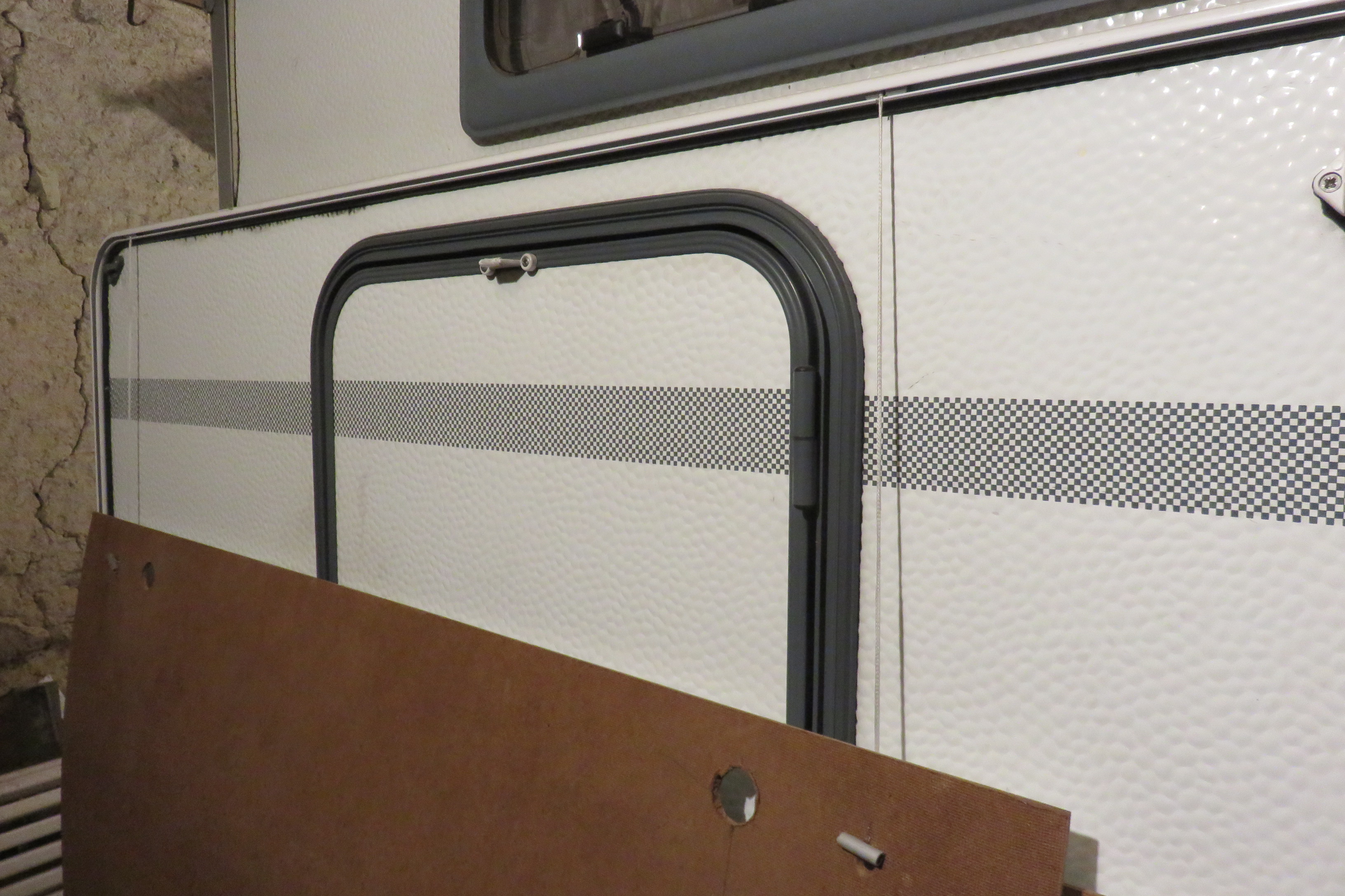 J'avais pensé à l'extrudé, mais il est assez cassant suite à un choc, car rigide et droit. Il n'aurait donc pas fait la forme d'arrondi que permet la fibre dure . Cet arrondi protège très bien des chocs car, comme expliqué, un choc pour atteindre la caravane doit d'abord redresser tout l'arrondi du panneau (qui résiste par son poids) et , en même temps chasser tout l'air entre le panneau et la paroi .