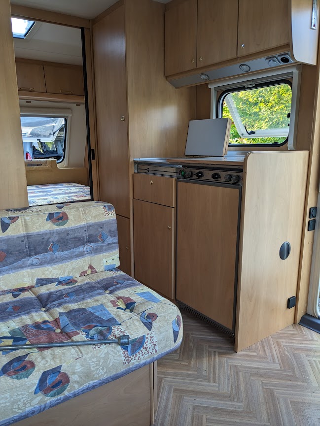Il a branché la caravane , on a testé toutes les lumieres et les robinets de l'evier et de la salle de bain . Il y a aussi les rideaux et doubles rideaux d'origine pliés dans les placards .