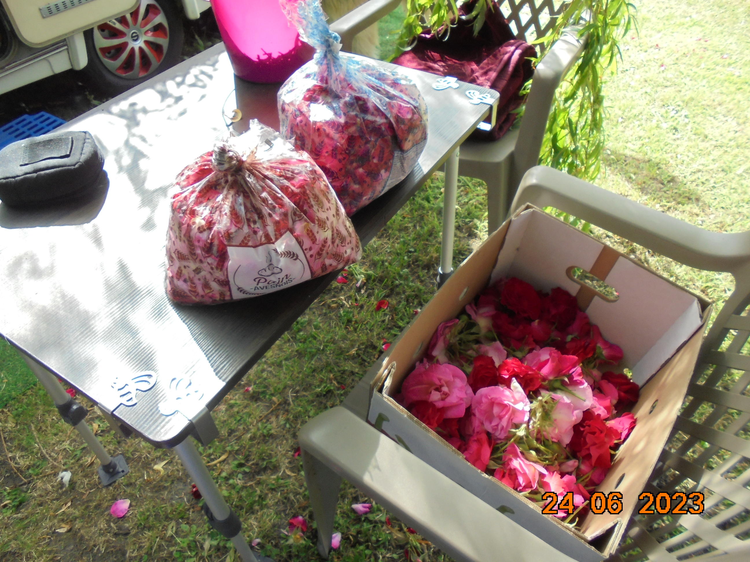 La voiture est vidée, la lessive se fait de même que je suis occupé à cuire mes pétales de rose, (1kg500) pour en faire de la gelée demain, cela va infuser plus de 12 heures.