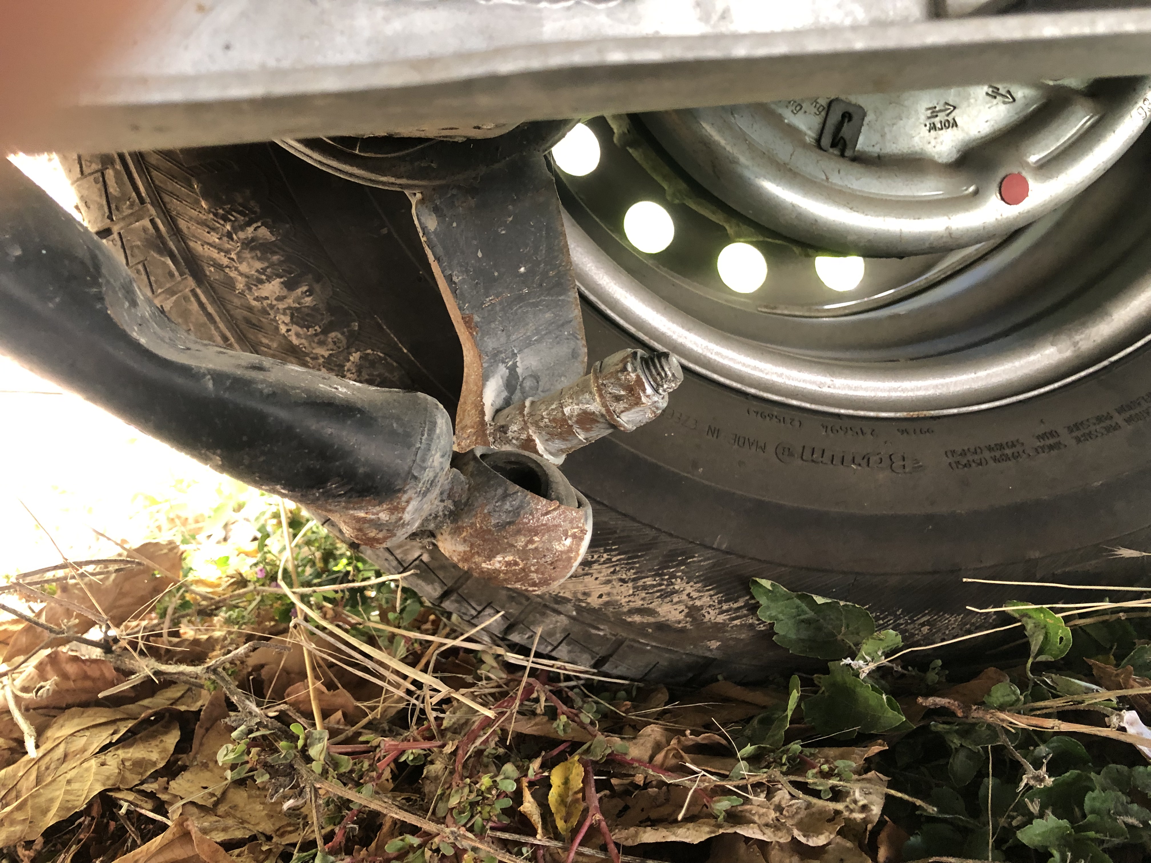 2. Nous avons heurter quelque chose ou pris un nid de poule et avons cassé l’amortisseur droit. Celui-ci est fixé d’une part au châssis et d’autre part à une pièce qui traverse toute la largeur de la caravane jusqu’à l’autre roue et l’amortisseur gauche. Je trouve que cette conception n’est pas top car ce sont des parties exposées aux aléas de la route et se situent juste à côté des roues et descend assez bas, proche du bitume. J’ai vu sur youtube que si la caravane n’a pas ces amortisseurs, on peut en ajouter. La caravane n’a donc pas cette grande pièce traversante et s’il y a casse, ça semble plus facile et moins cher à changer.