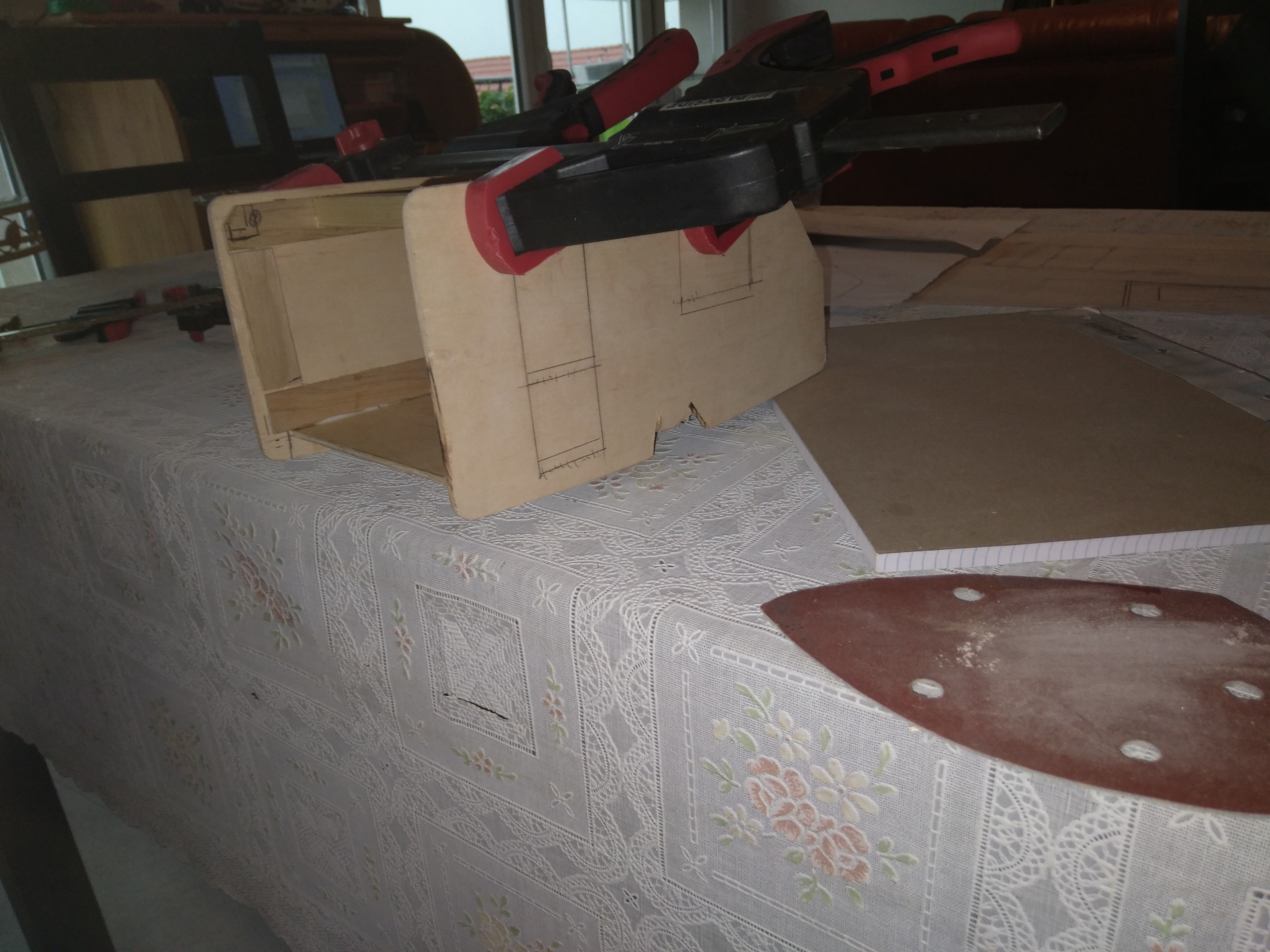 La caisse de la caravane miniature avance très bien bien du fait que le temps n'est pas au top, j'ai travaillé toute la journée dessus. La caisse est presque finie, reste quelques finitions, et puis, ponçasse au papier de verre très fin.