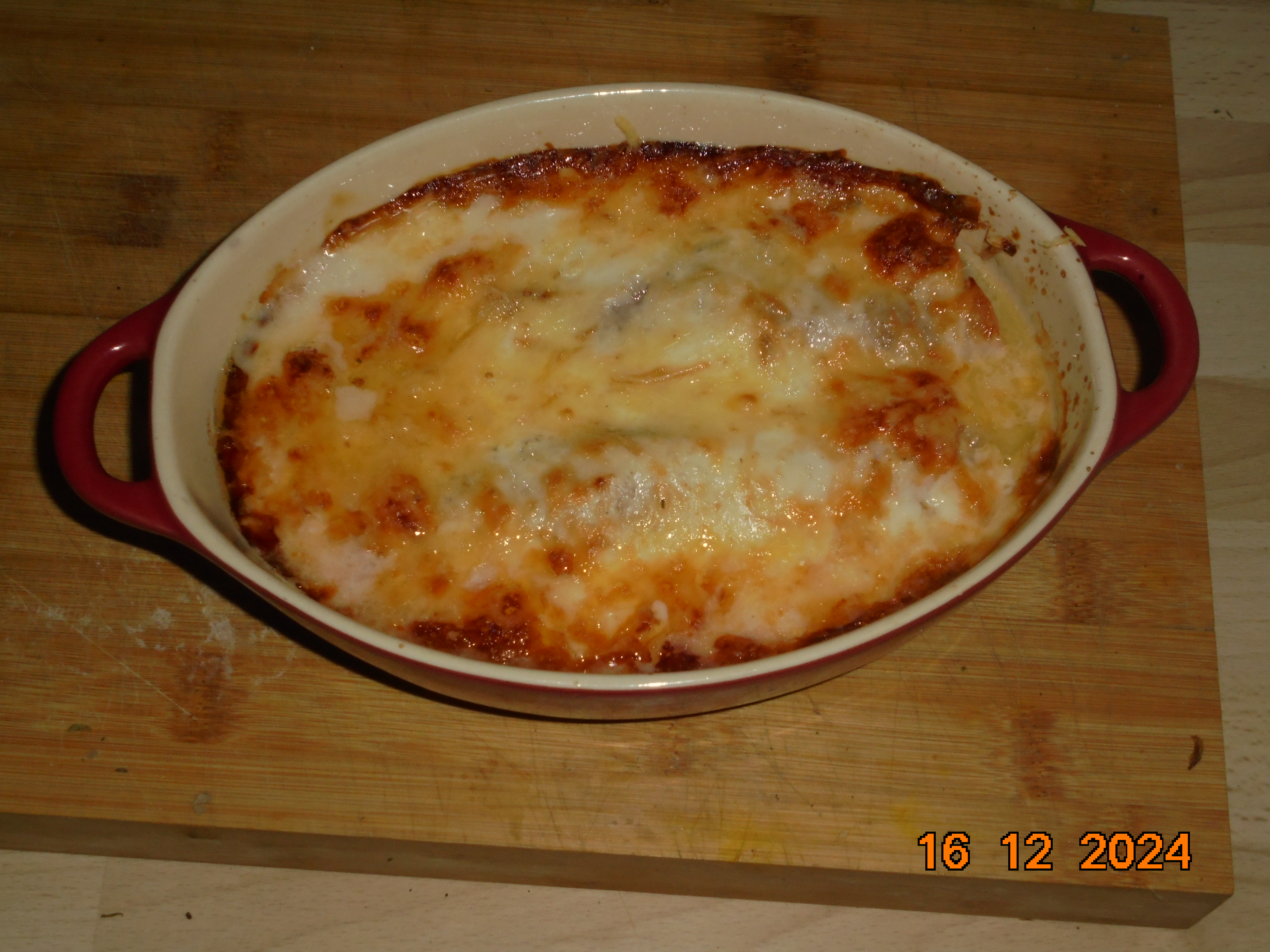 Pour ce midi, j'ai fait un gratin de blanc de poireaux/jambon et purée maison