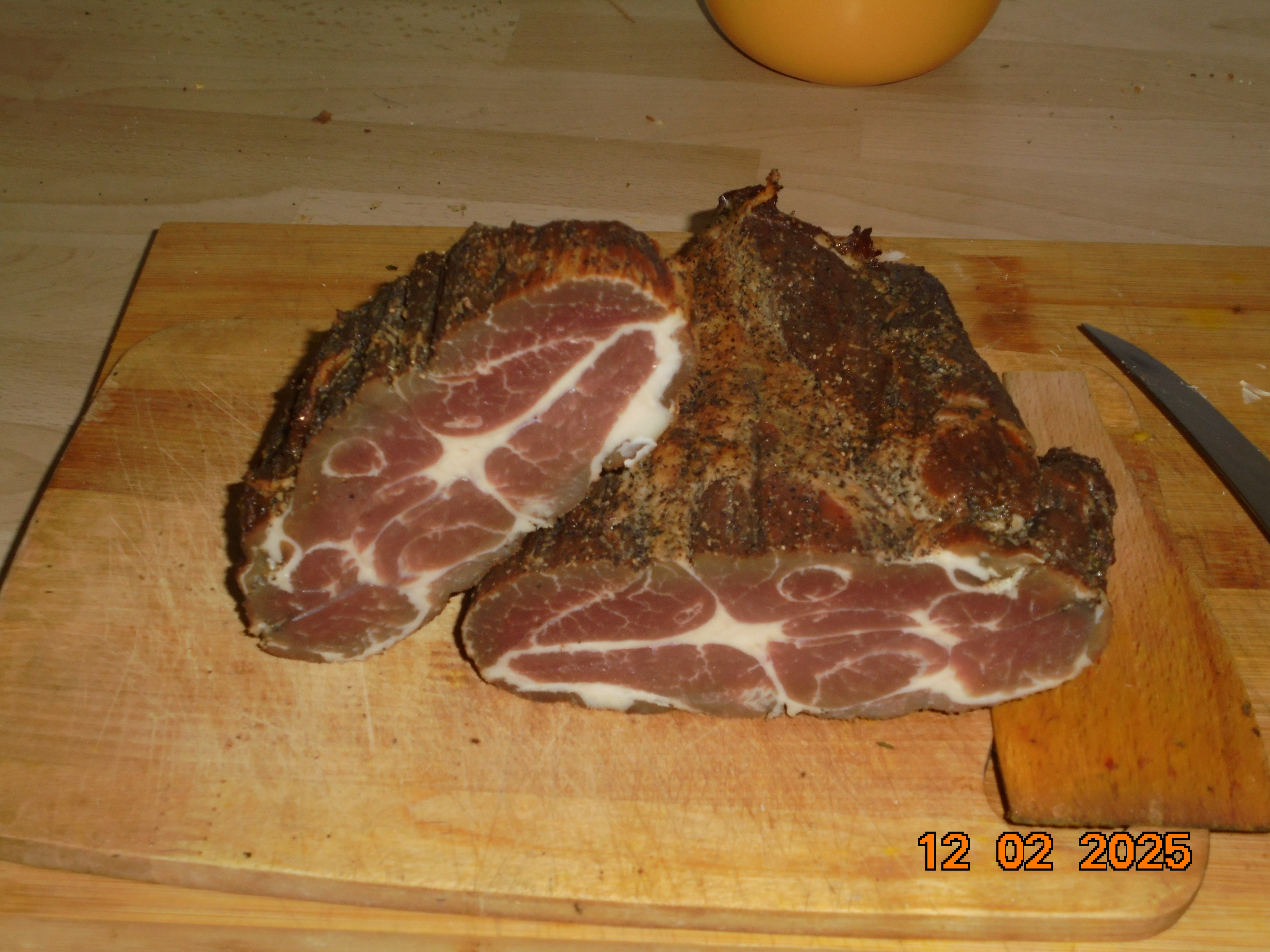 J'ai gouté une fine tranche du rôti ardennais, une tuerie. Le sel, tout juste comme les autres épices. Rn plus, ça ne me revient à même pas 10 euros le kg, alors que le bacon artisanal chez un bon boucher, c'est environ 20 euros et plus et chez moi, pas de colorants ni de conservateurs.