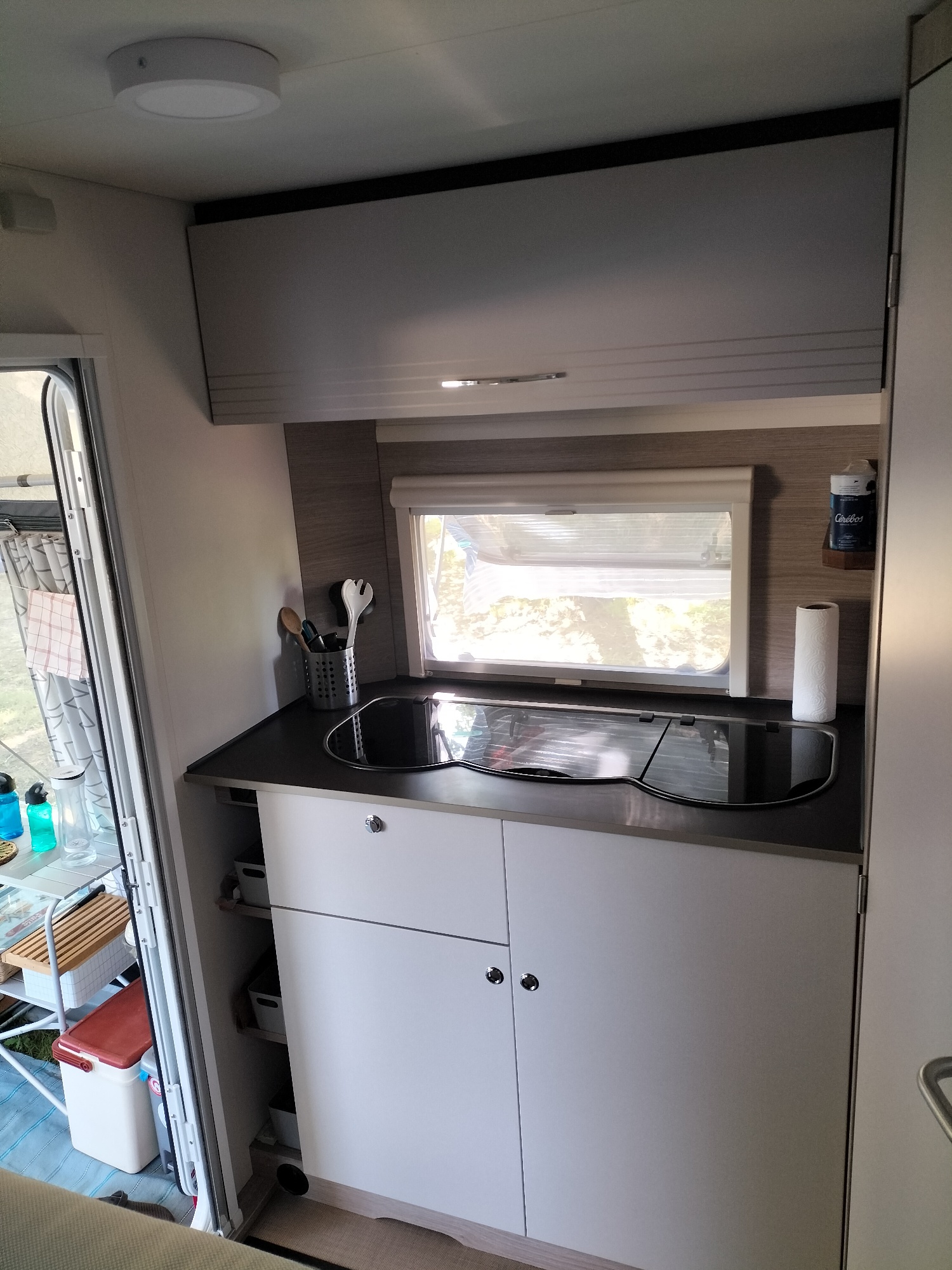 Le frigo a compression est beaucoup plus petit, on s'était habitué au grand frigo de la Across, et il n'y a pas de four micro ondes. Cabinet de toilette petit-petit , on a plus la souplesse de nos 20 ans!