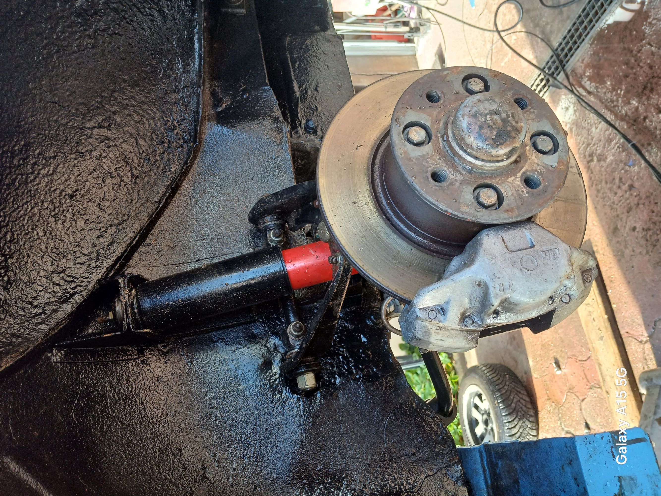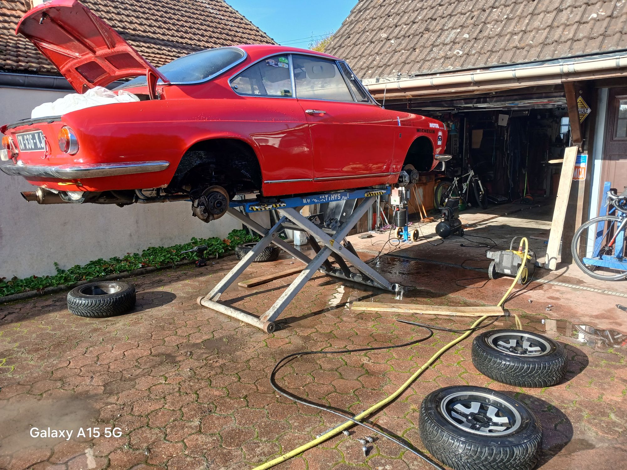 Donc après la remise en état mécanique, ce matin ce fut le grand décrassage du châssis et autre élément dont le compartiment moteur.