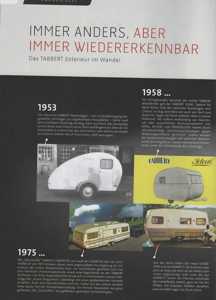 Je viens de retrouver cet article de 4 pages sur l'évolution des caravanes Tabbert de 1953 à 2023.