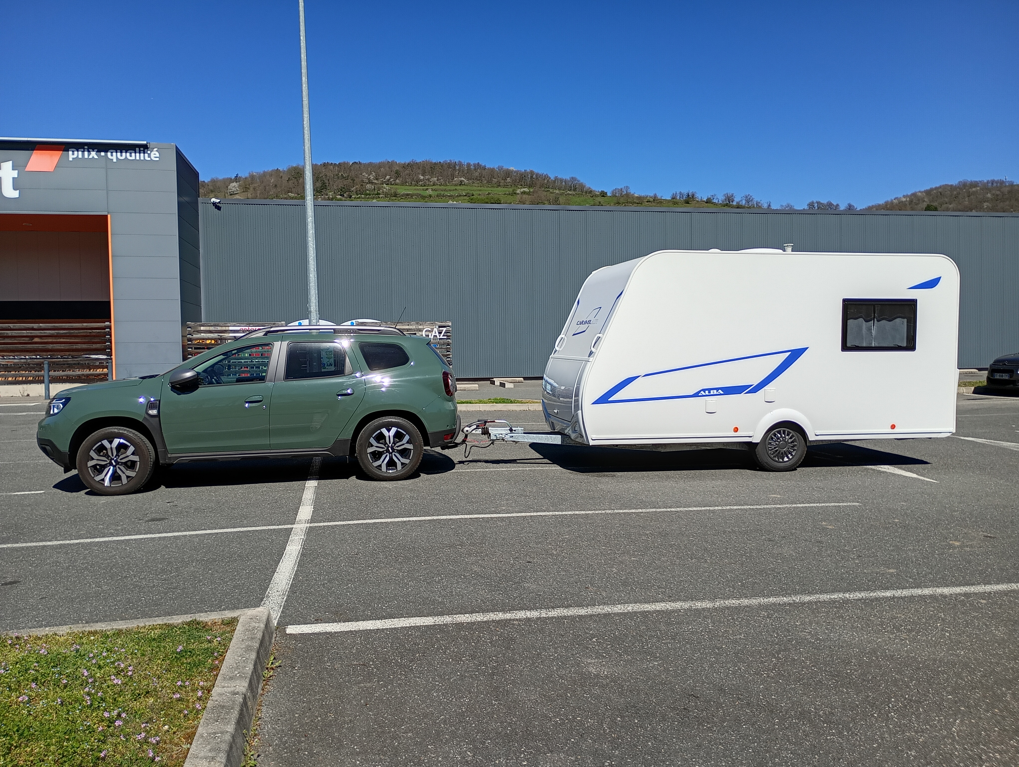 Nous avons trouvé une Allégra 390 que nous pensons être bien adaptée à nos souhaits. Nous avons aussi une Duster 1.5 DCI que j'ai trouvé assez véloce pour la tirer. Mais c'était sur 200 km en rentrant de la concession, et à vide.