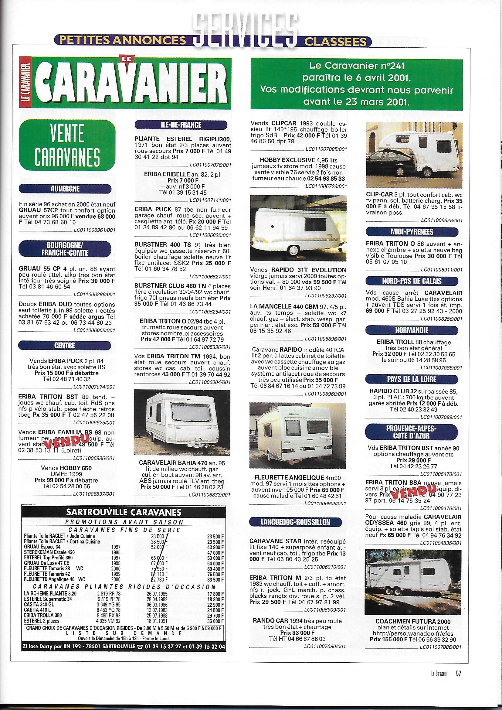 Comme je l'ai évoqué sur le forum des propriétaires d'Esterel pliantes, ce journal a de moins en moins d'intérêt pour les caravanes et c'est regrettable.