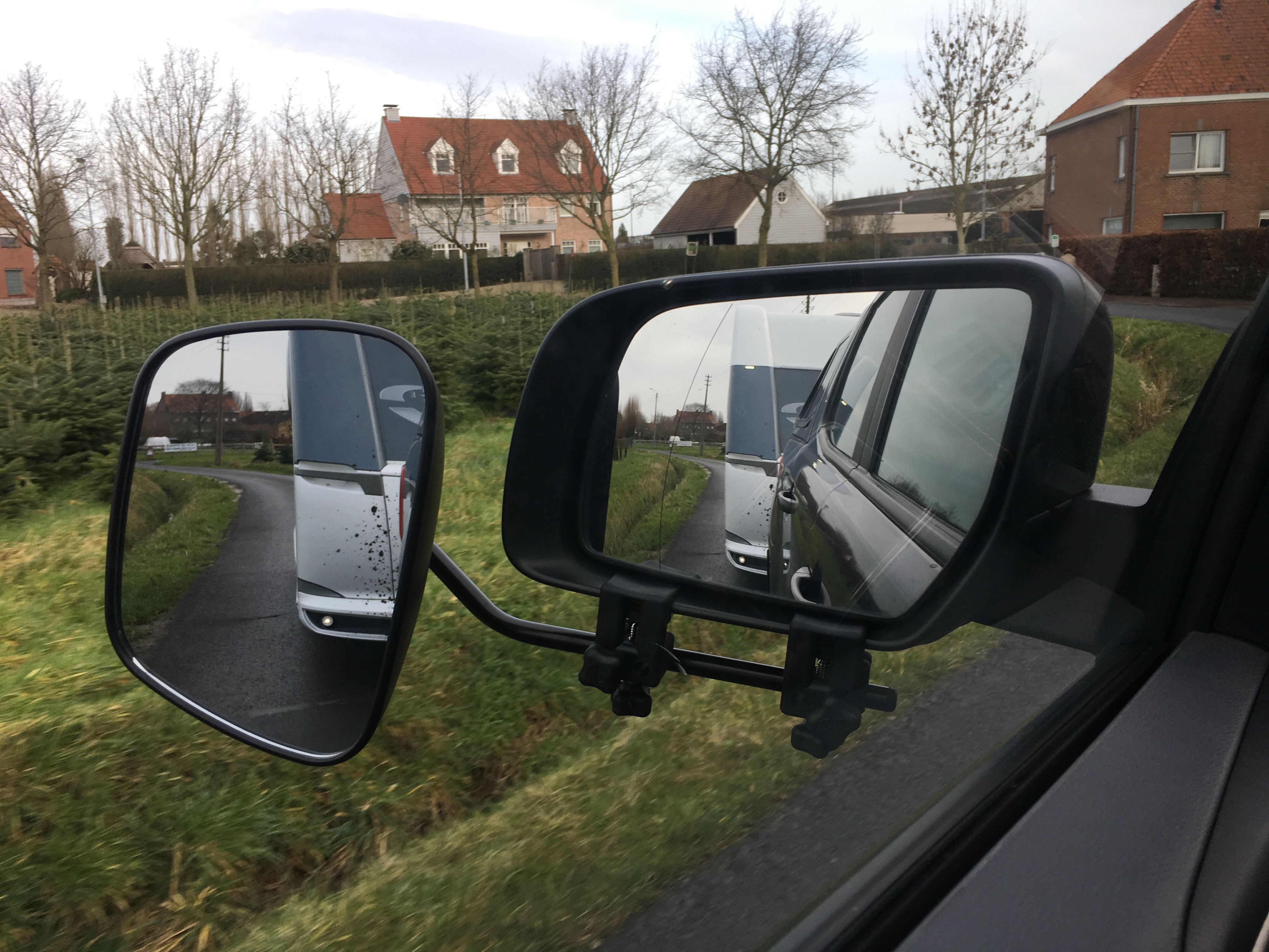 Je n'ai jamais entendu pour les rétroviseurs incurvé en Belgique. Sur ma photo ci-dessus, on dirait que mon rétroviseur de la voiture est lui-même incurvé car la caravane parait plus petite.