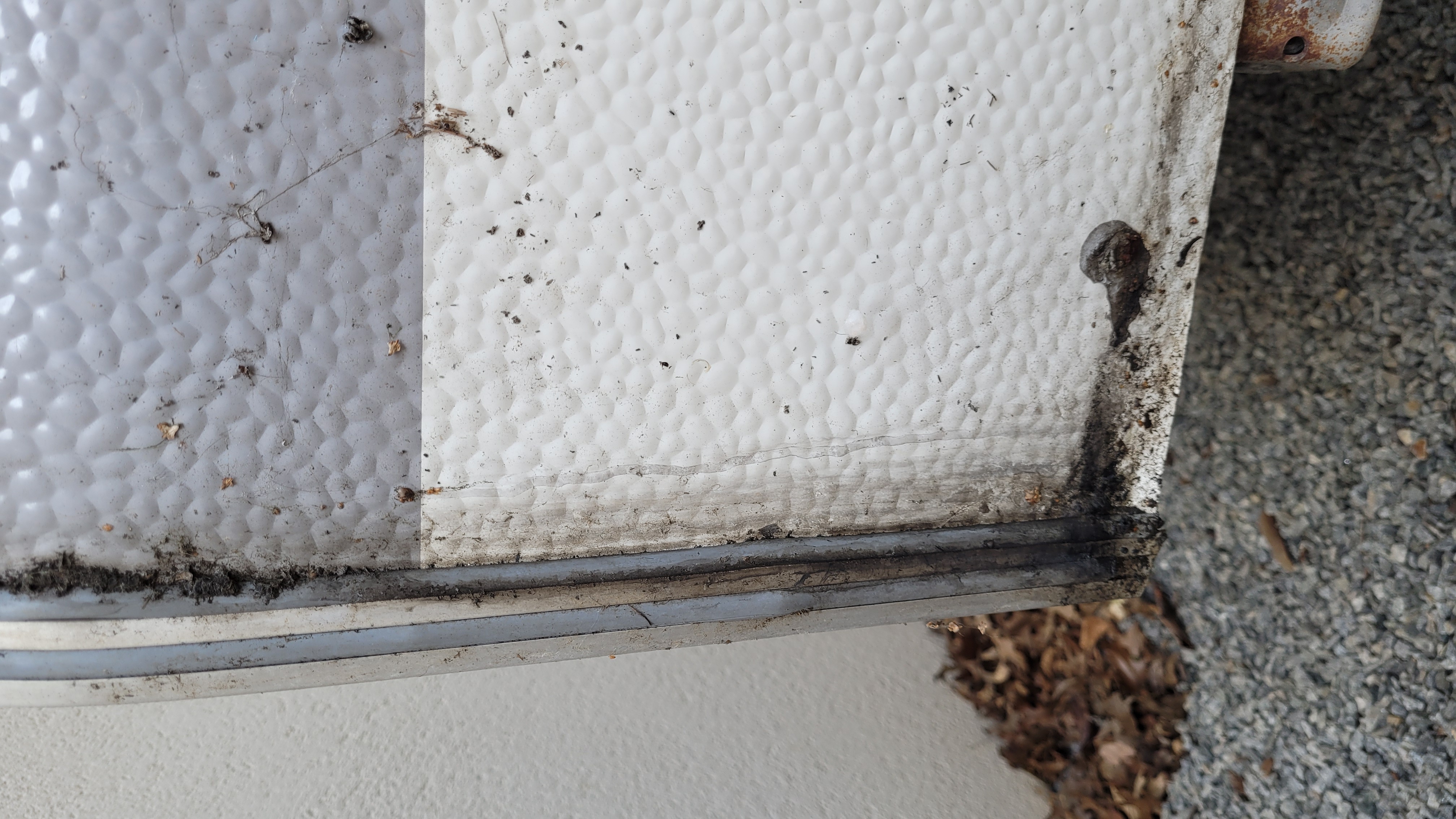 Non par l'extérieur le long des rails , ou bien via une vis manquante ou bouffée par la rouille... après est ce que ça a ramolli le plancher ? La paroi ? Ça dépend du temps qu'à duré l'infiltration.. Tu as des photos de cet angle par l'extérieur ?