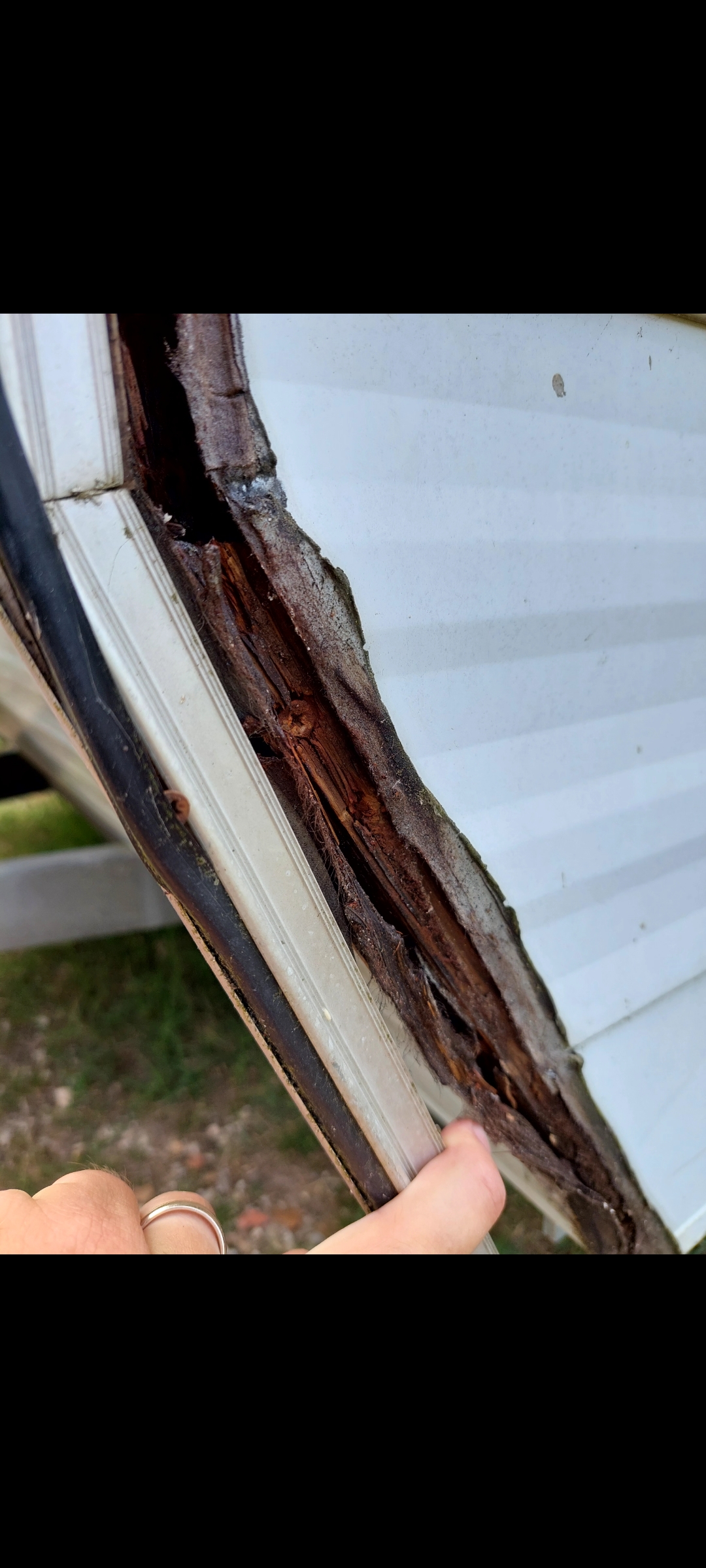 Suis passé par la en 2003 sur ma Tristar... En faisant attention de pas faire de pli tu degrafes la tole un peu plus pour accéder par l'extérieur et changer les tasseaux foutu, tu peux te raccrocher aux parties intactes avec des équerres de chaises, si l'isolant est hs, tu remets à neuf, le rail d'angle à l'air ok, c'est un bon point. Tu réfixes la tole, apparemment avec des cavaliers ?? Bon comme à l'origine puis le rail avec une bonne dose de sika... Bon courage