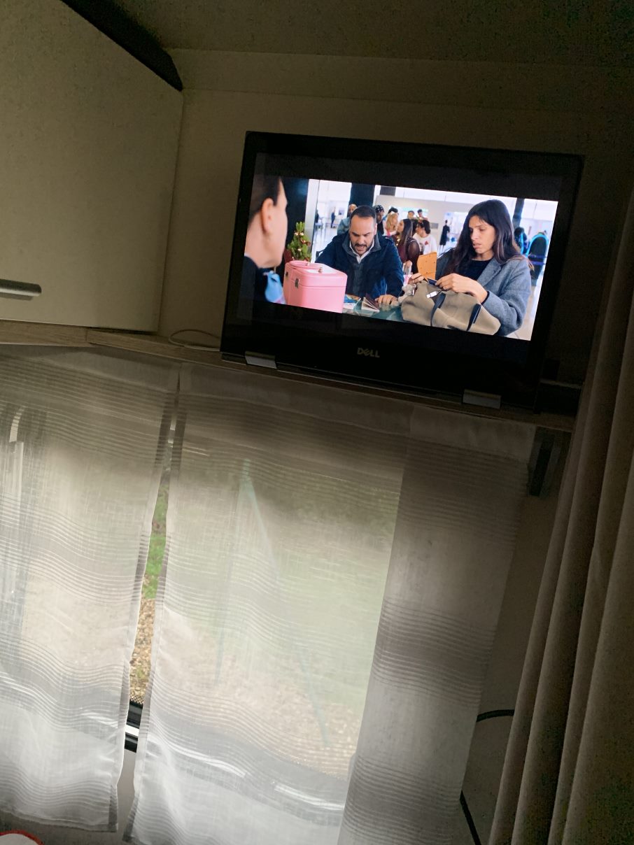 - pas de prise 220v à l’extérieur mais on se débrouille facilement via une multiprise et une rallonge qui passe sous la caravane