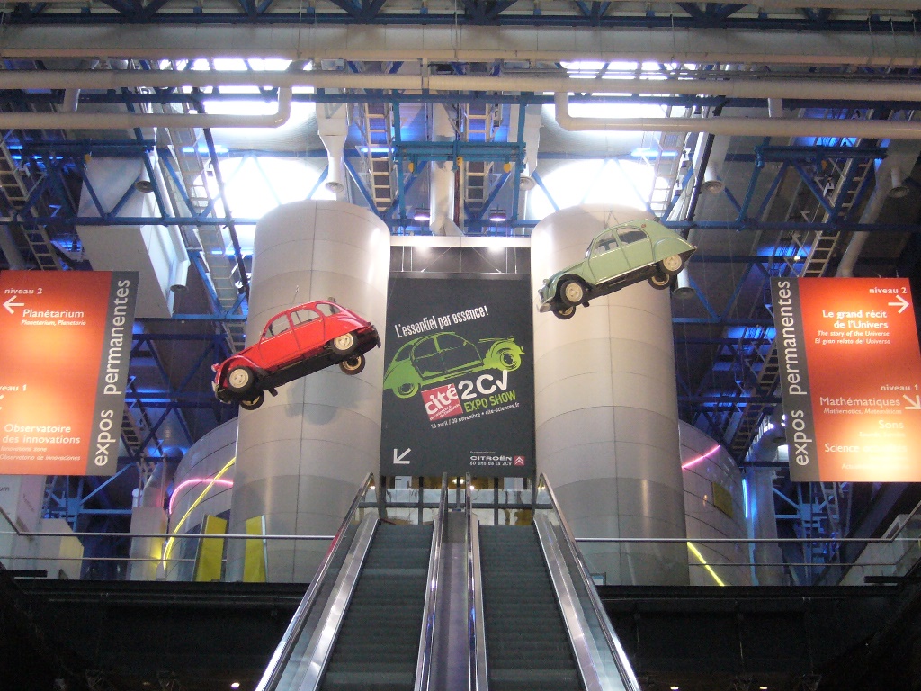 La cité des sciences accueille souvent des expos temporaires, comme ici, la 2cv: