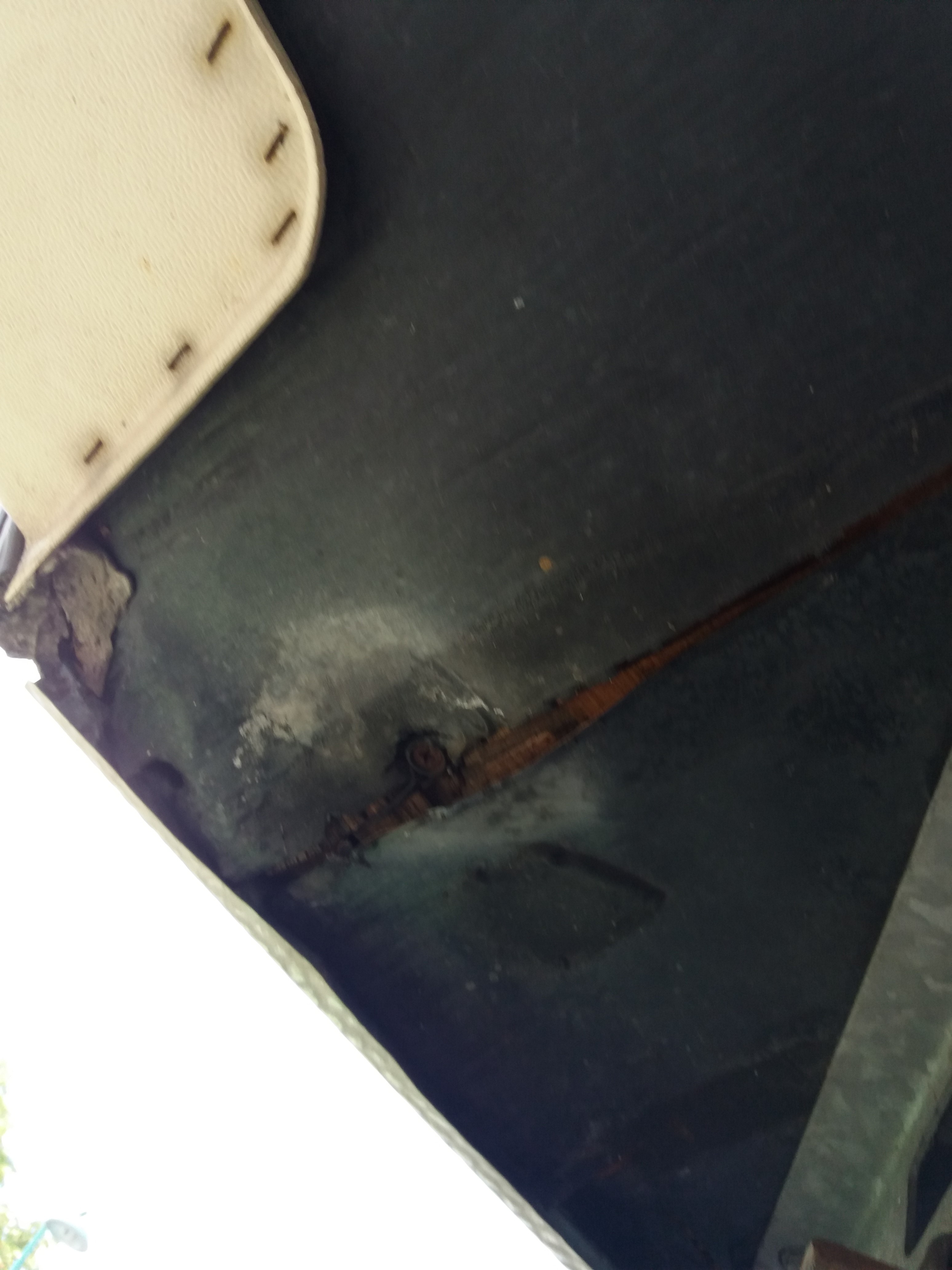 En me penchant sous ma LMC à l'avant, je me suis rendu compte que le plancher s'effritait, avec les lames de bois qui se décollent.
