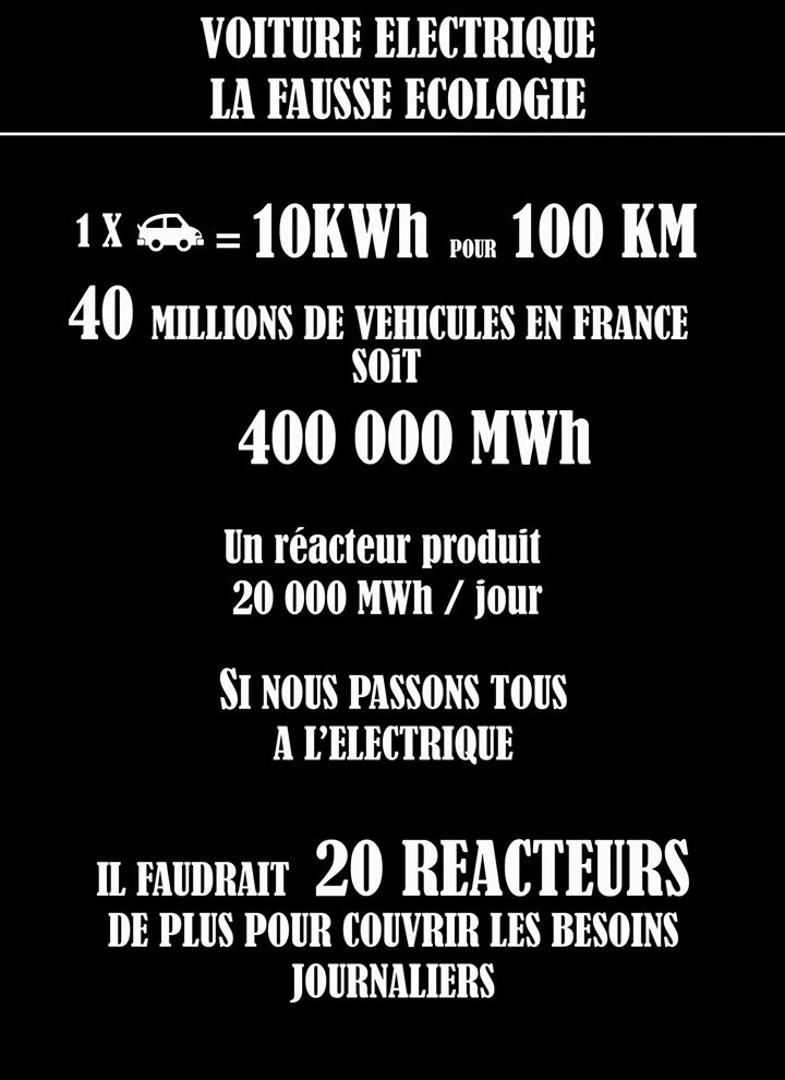 créé un réseau de production électrique écologique et performant, car si du jour au lendemain nous mettons 50% de véhicules électrique dans les villes le réseau ne pourra évidement pas les supporter, nous sommes à l'heure actuelle en production insuffisante sur plant électrique en hiver nous en achetons d'ailleurs à l'Allemagne qui produit cette électricité de façon écologique: AU CHARBON!!!!