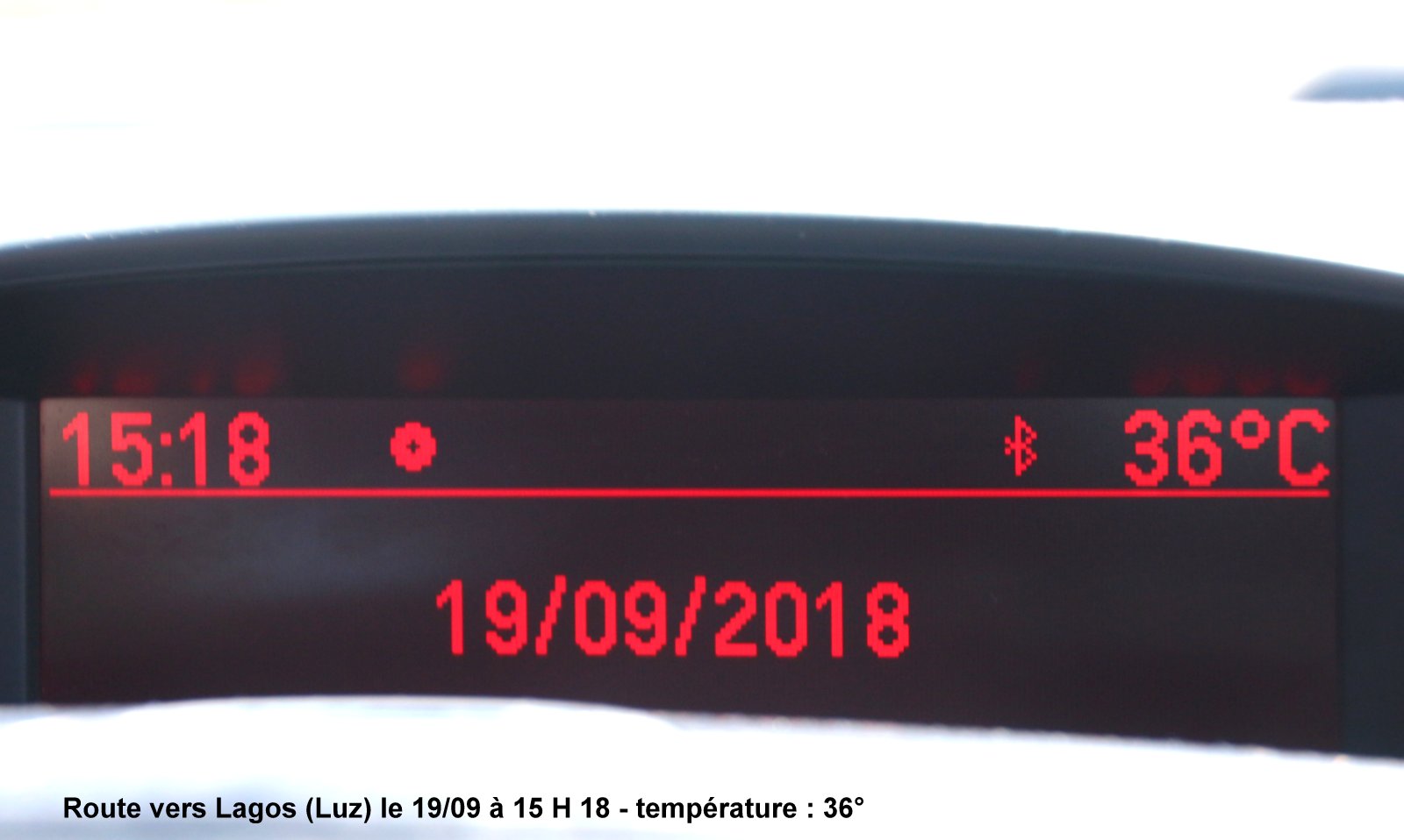 A 13 h on avait dans la voiture 27°- on est passé à 36° à 15 h .... la température monte, c'est normal en allant vers le sud