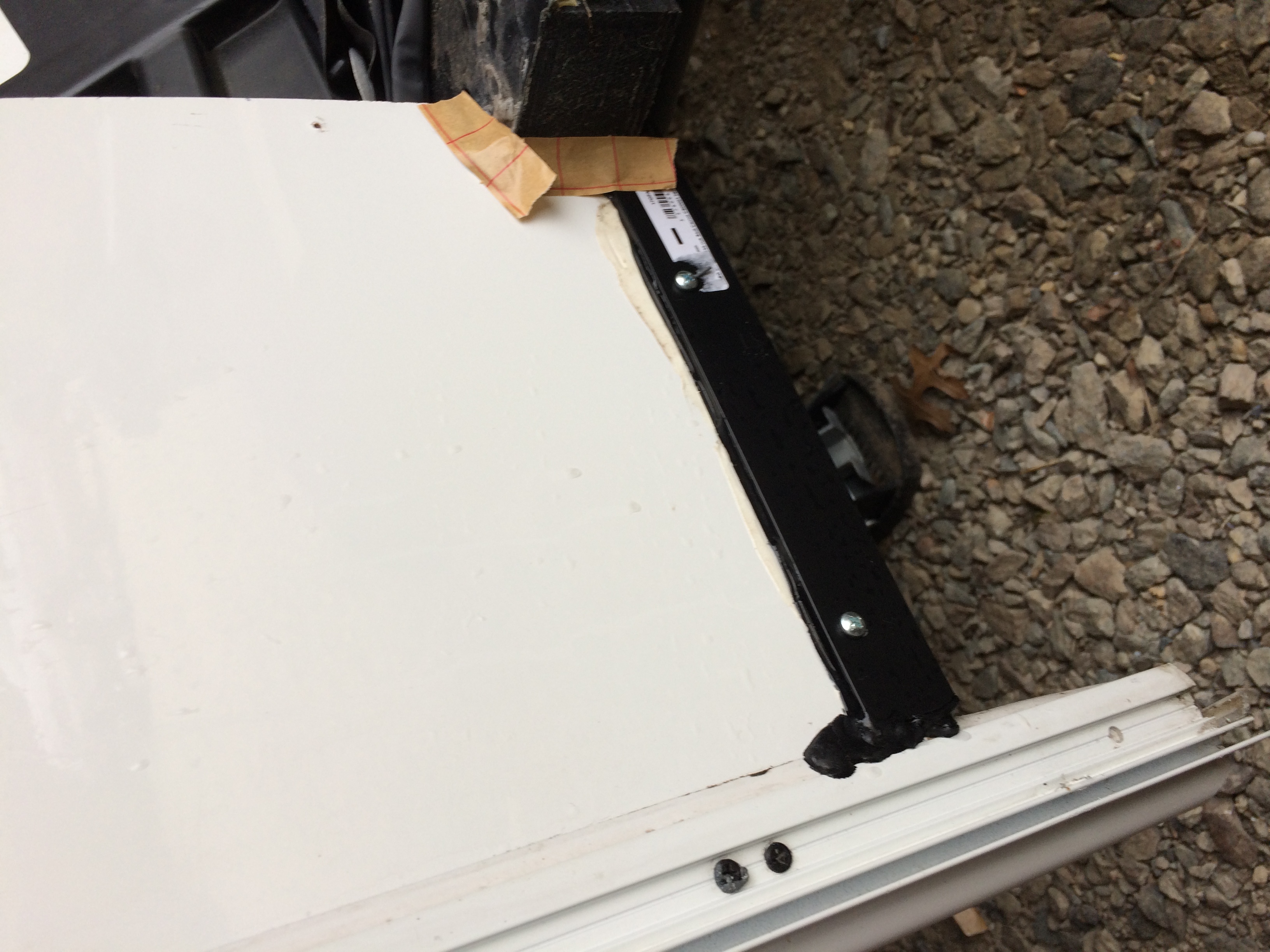 J'ai déposé la partie basse de la face avant , mis de la peinture goudronnée sur les parties en bois (après séchage) remastiquer avec du butyle en bande et j'ai mis une plaque plastique sur les parties basses droite et gauche afin d'éviter que l'eau pluviale ne migre sous le plancher .....j'ai aussi mis une gouttière (collée au butyle) pour limiter encore les risques d'infiltrations ......