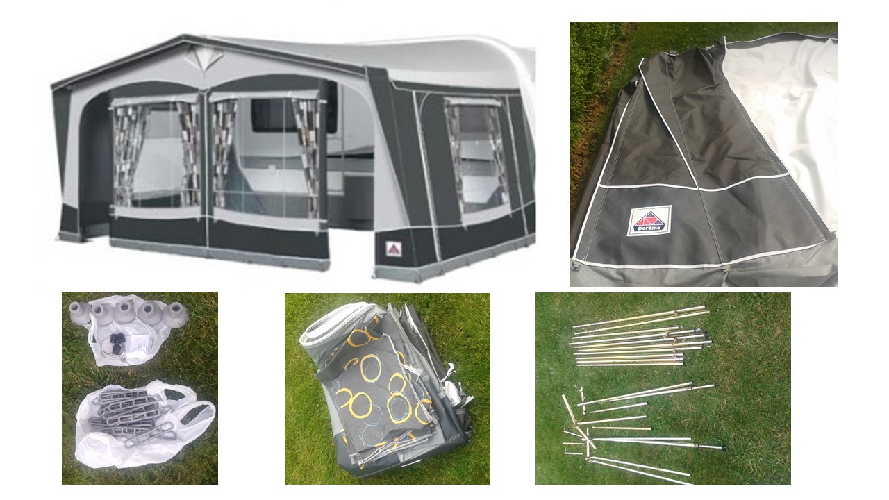 - 350 Euros : Un auvent tout neuf , marque Dorema, avec un développé de 9m50 et une profondeur de 2m70 . Je venais de l'avoir avec la caravane, et il ne m'était pas utile ayant un store ban, et faisant beaucoup d'itinérant. Il est parti pour quelqu'un qui venait de racheter une adria 2 essieux des années 80