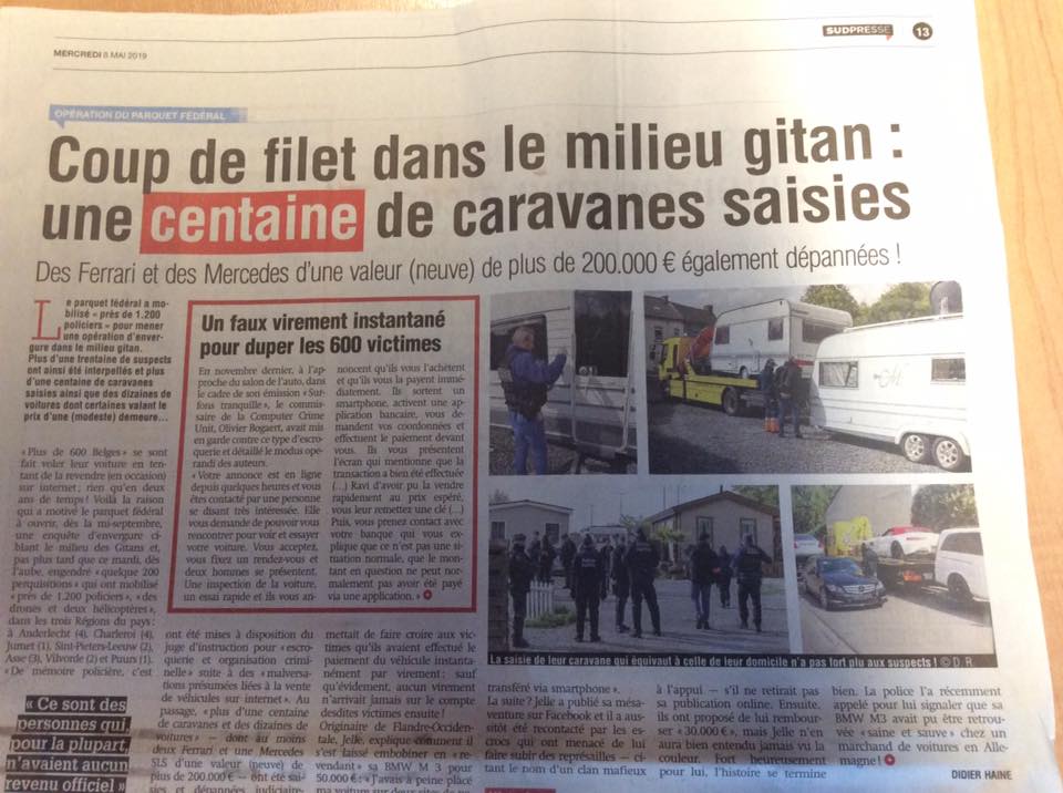 Un article pendant le JT télévisé en Belgique avait précisé que le propriétaire suisse avait contacter la police fédérale de la localité où le traker avait fonctionne. 18 caravanes et CC avaient été retrouvés en même temps.