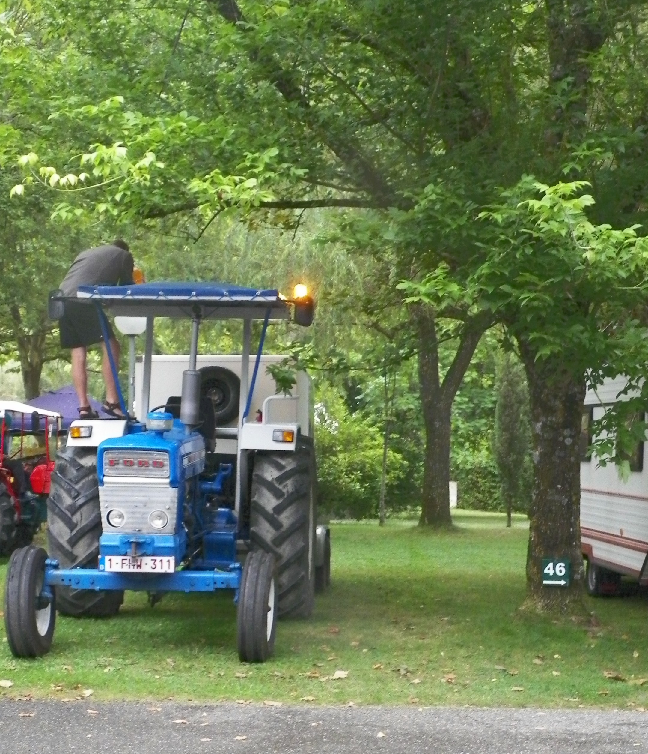 (5 Allemands)avec un tracteur orange Fiat superbement restauré qui tractait une vieille caravane Hobby