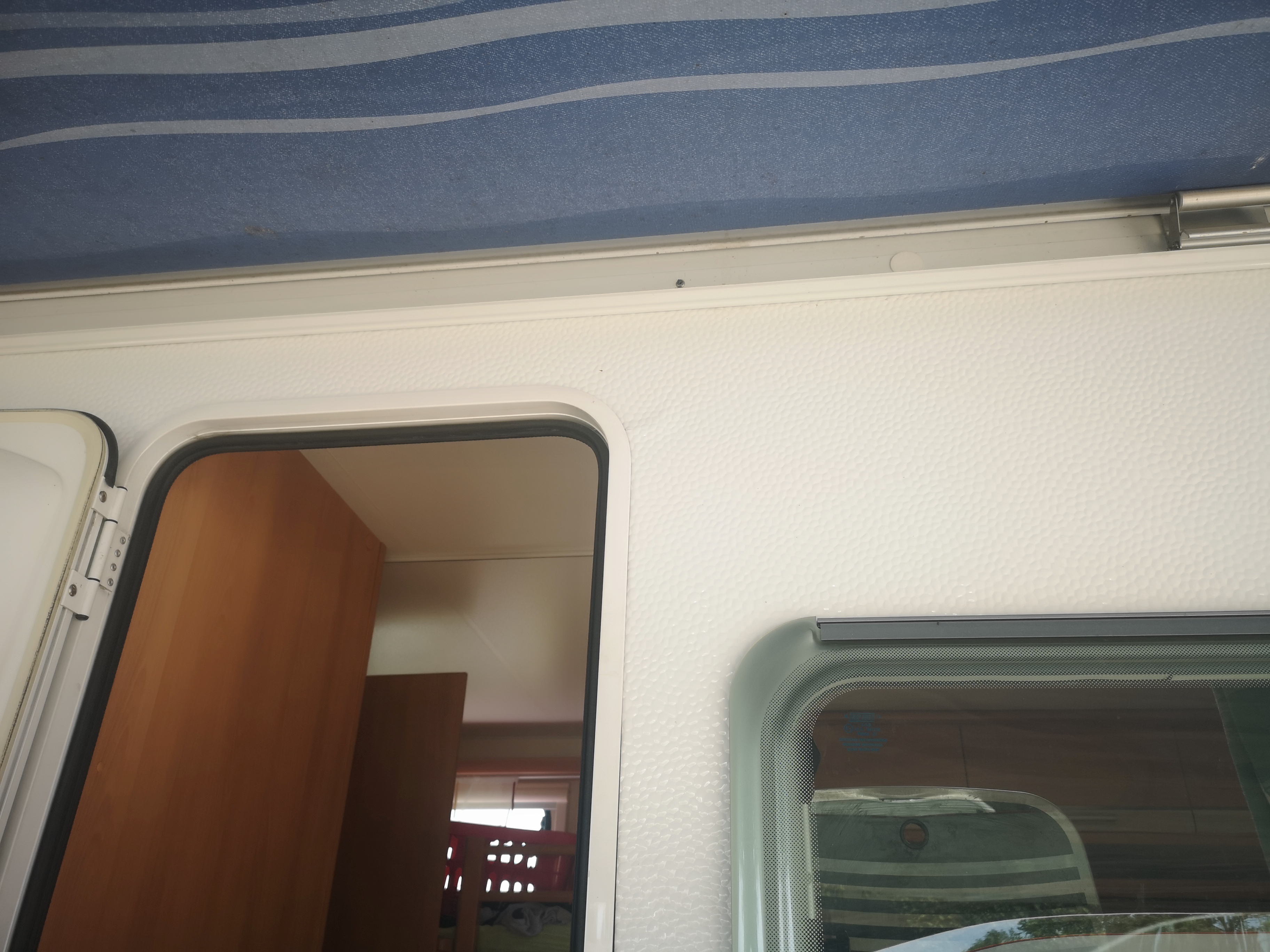 Même déformation et fente sur mon Evasion Sterckeman de 1984,. La fente était présente en 1990. Un peu de silicone. Elle n'avait pas évolué jusqu'à ce que je me sépare de cette caravane en 1998.