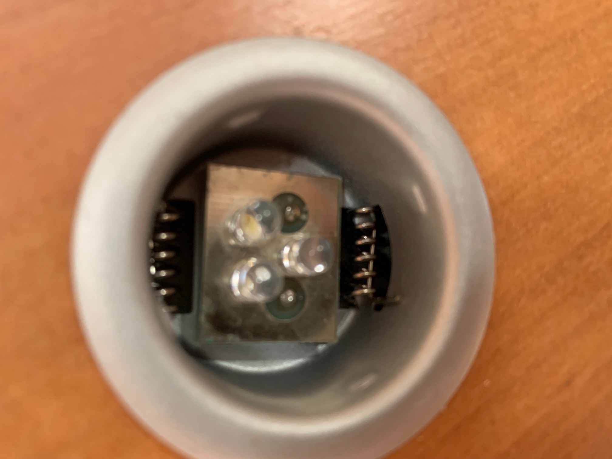 Par contre en passant une pointe de couteau entre les 2 bagues alu on peut enlever le carreau et on voit la lampe qui me parait bizarre et jamais vue
